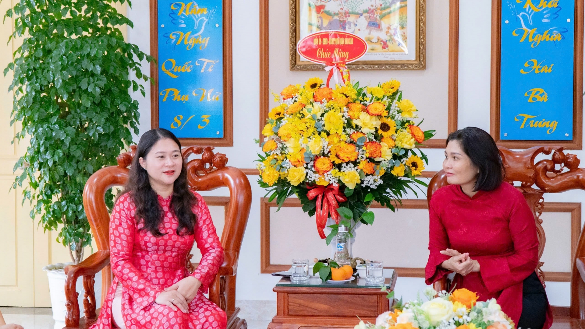Bà Cao Thị Huyền Trân - Bí thư Quận ủy Hải Châu thăm, tặng hoa chúc mừng Hội Liên hiệp Phụ nữ thành phố.