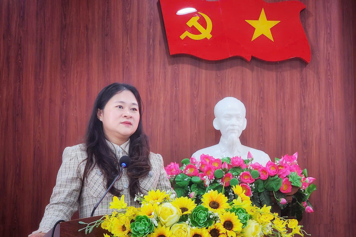 Bà Cao Thị Huyền Trân phát biểu tại buổi lễ.