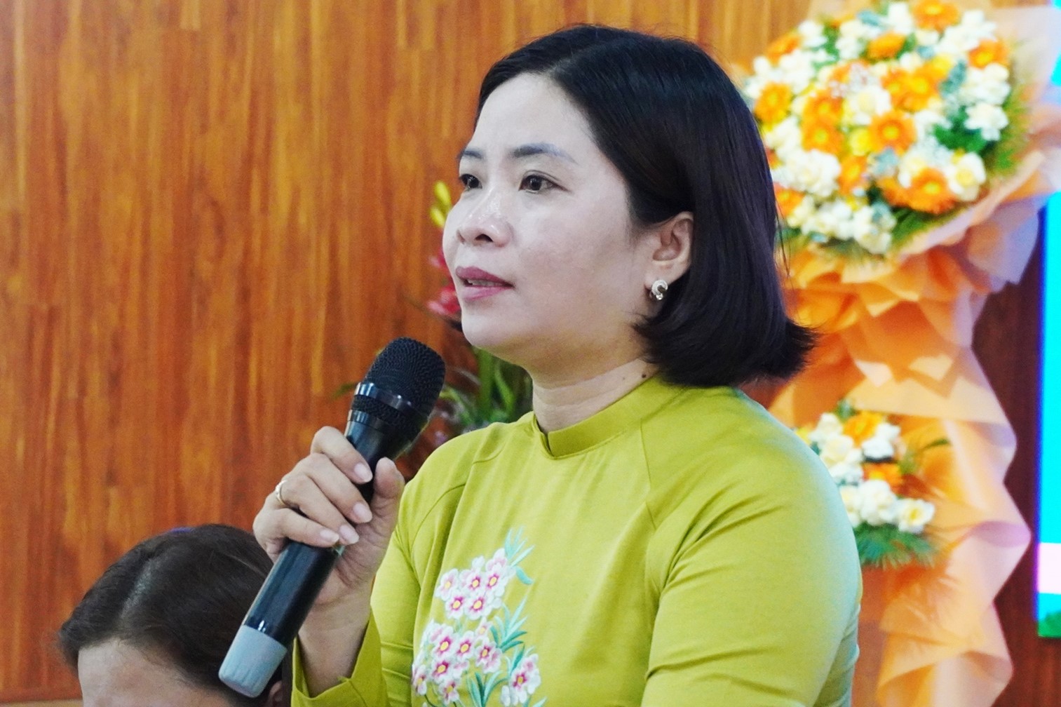 Bà Hoàng Thị Thu Hương, Chủ tịch Hội Liên hiệp Phụ nữ thành phố Đà Nẵng phát biểu tại hội nghị.