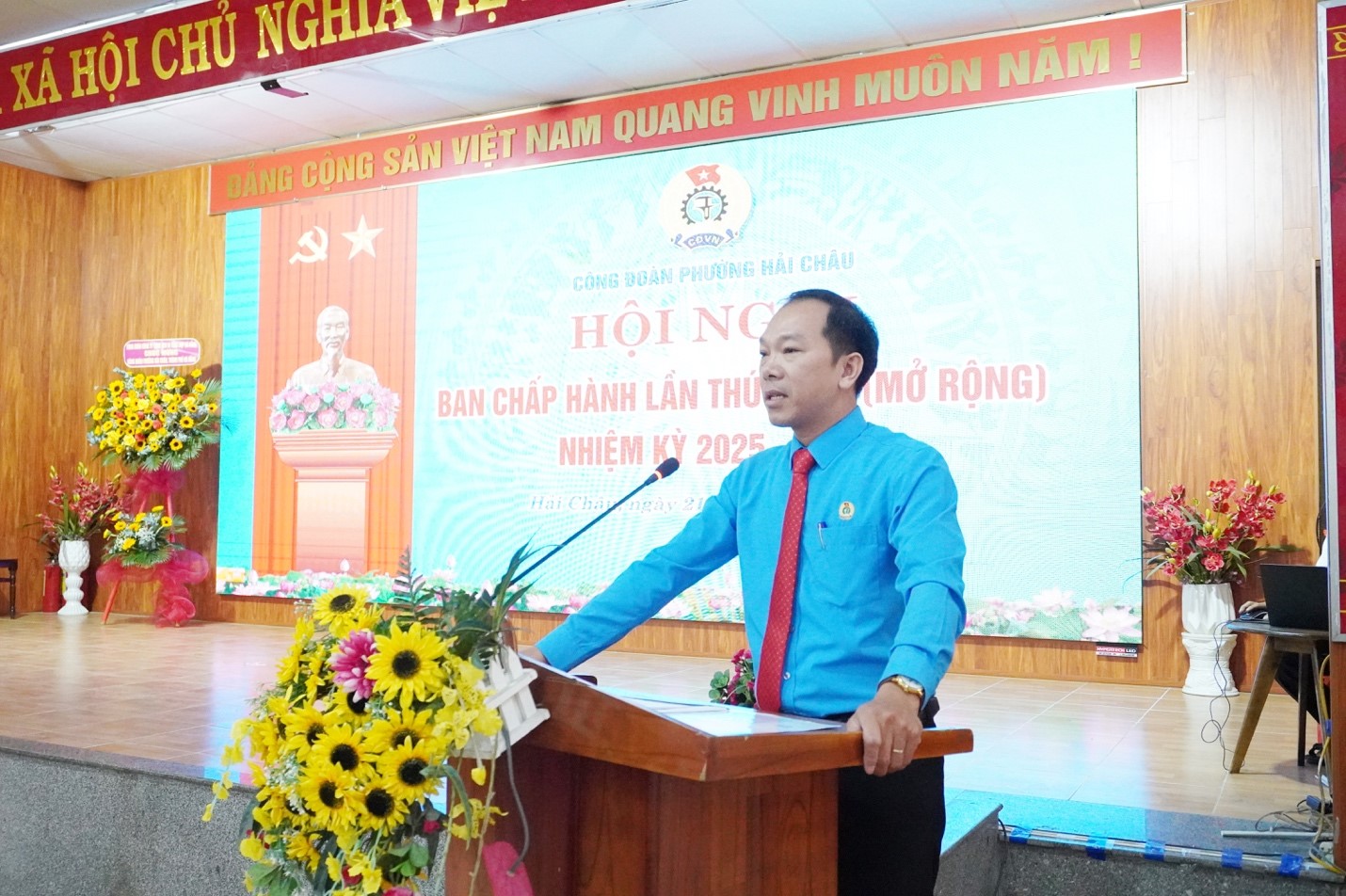 Tiếp thu ý kiến chỉ đạo tại hội nghị, ông Nguyễn Đình Trung - Chủ tịch Công đoàn phường Hải Châu gửi lời cảm ơn đến Liên đoàn Lao động thành phố và cấp ủy, chính quyền địa phương đã tin tưởng giao nhiệm vụ.