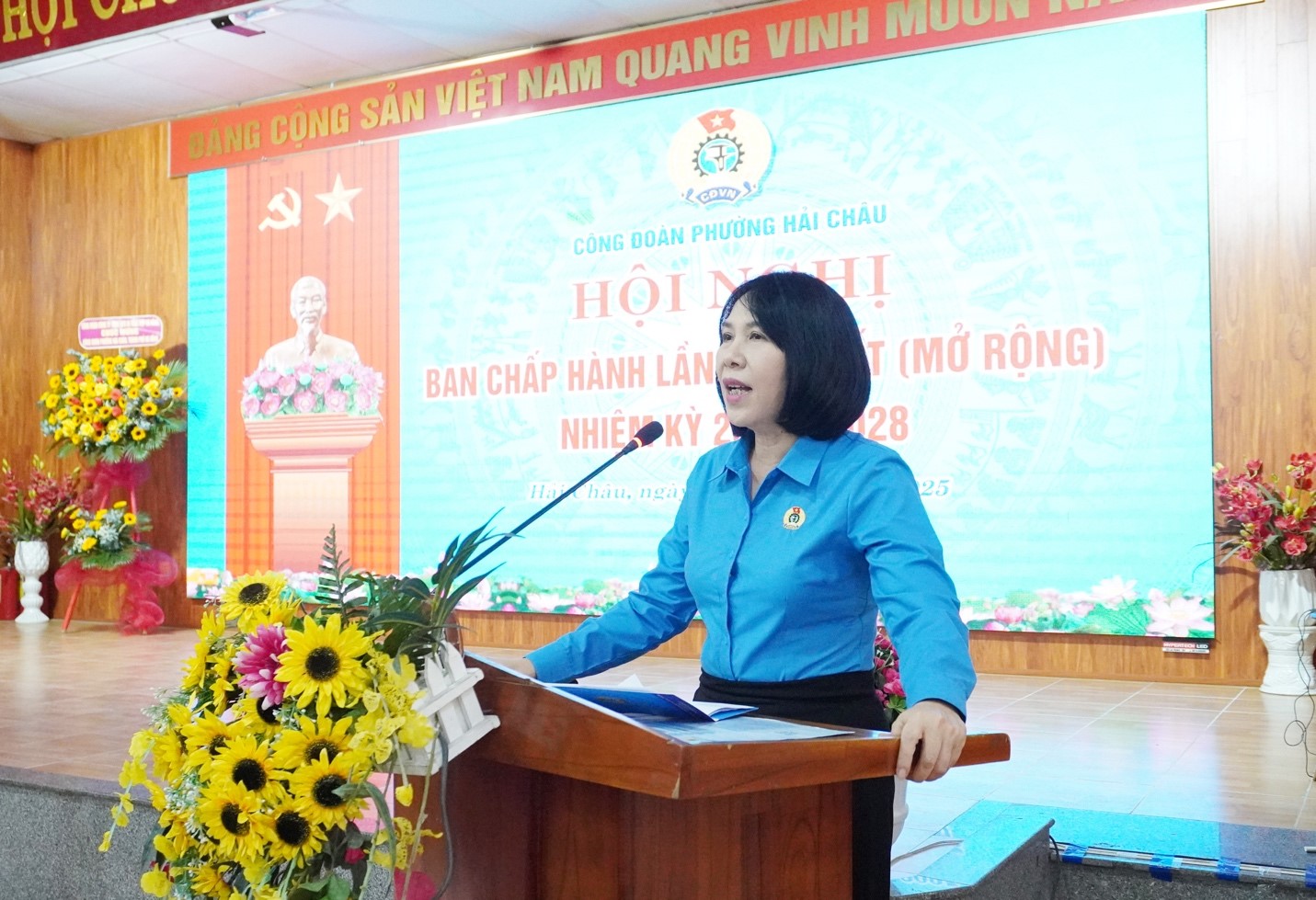 Phát biểu chỉ đạo tại hội nghị, bà Hồ Thị Lan Hương – Phó Chủ tịch Liên đoàn Lao động TP Đà Nẵng nhấn mạnh, việc thành lập Công đoàn phường Hải Châu là một trong những bước cụ thể hoá chủ trương lớn của Đảng về triển khai mô hình chính quyền địa phương 2 cấp. Với tinh thần chủ động, trách nhiệm cao, đến nay Liên đoàn Lao động thành phố đã chỉ đạo thành lập được 26 công đoàn phường, xã trên toàn địa bàn.