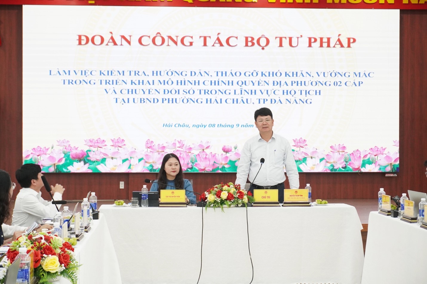 Sáng 8/9, UBND phường Hải Châu đã đón đoàn công tác của Bộ Tư pháp do ông Nguyễn Thanh Tịnh, Thứ trưởng Bộ Tư pháp làm trưởng đoàn đến làm việc.