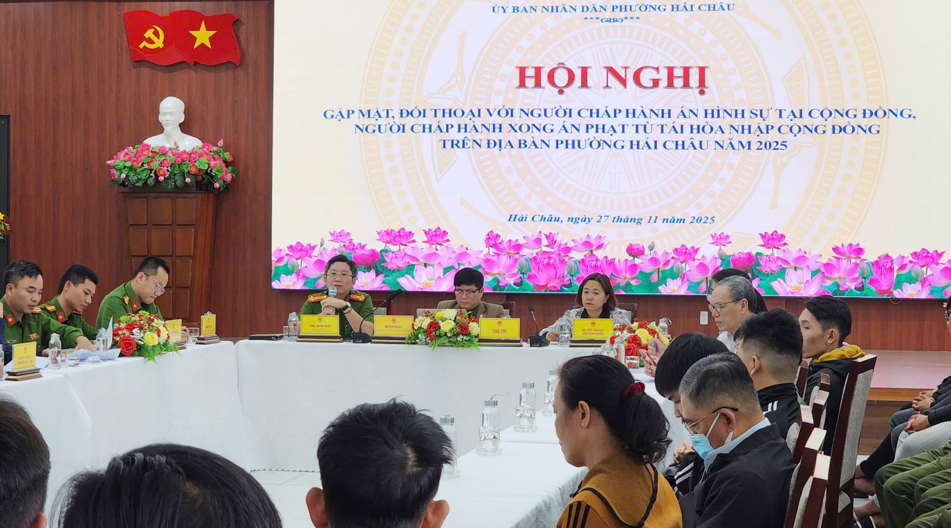 Chiều 27/11, phường Hải Châu tổ chức Hội nghị gặp mặt, đối thoại, trợ giúp người chấp hành xong án phạt tù trở về tái hòa nhập cộng đồng, người đang chấp hành án tại cộng đồng; Công bố Quyết định về kiện toàn mô hình “03 hỗ trợ”trên địa bàn phường Hải Châu năm 2025.