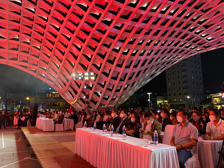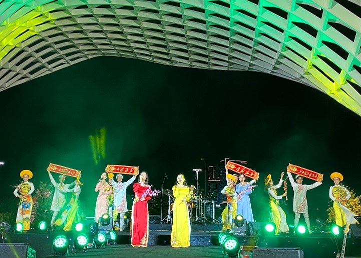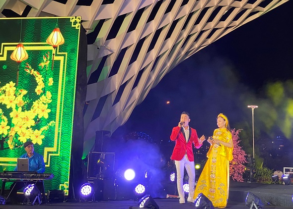 Tối 12-2, tại Công viên vườn tượng APEC mở rộng, Chương trình Nghệ thuật “Sắc Xuân 2022” do UBND quận Hải Châu chỉ đạo tổ chức, được thực hiện bởi Trung tâm Văn hóa - Thể thao quận Hải Châu và Nhà hát Trưng Vương, thu hút đông đảo người dân và du khách đến xem.