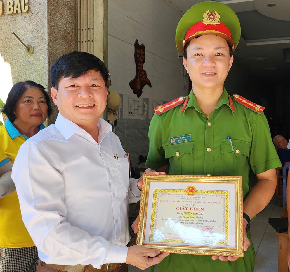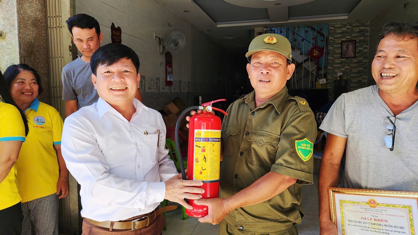 Ngay tại buổi thăm, Chủ tịch UBND phường Hải Châu đã tặng bằng khen cho các tập thể, cá nhân, hỗ trợ cấp lại 50 bình chữa cháy mới cho Tổ Liên gia An toàn PCCC, Khu dân cư Nam Vinh 2 và Công ty Long Minh.