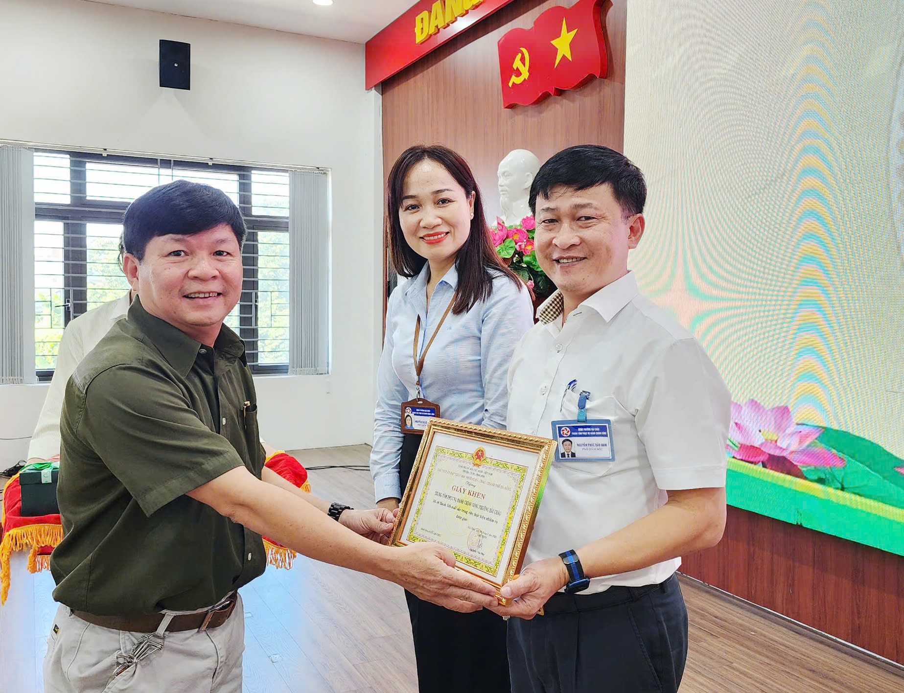 Ông Phan Hữu Phụng - Phó Chủ tịch UBND phường trao giấy khen cho Phòng Văn hoá - Xã hội.