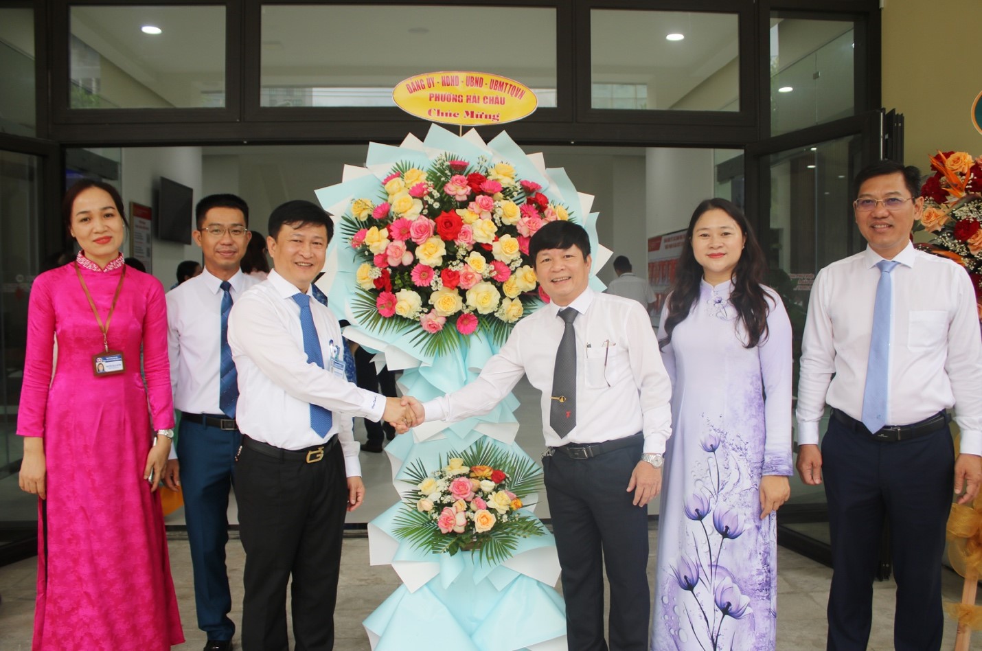 Bà Cao Thị Huyền Trân - Bí thư Đảng uỷ phường Hải Châu cùng các lãnh đạo phường đã đến thăm, tặng hoa, động viên các cán bộ tại Trung tâm Hành chính công.