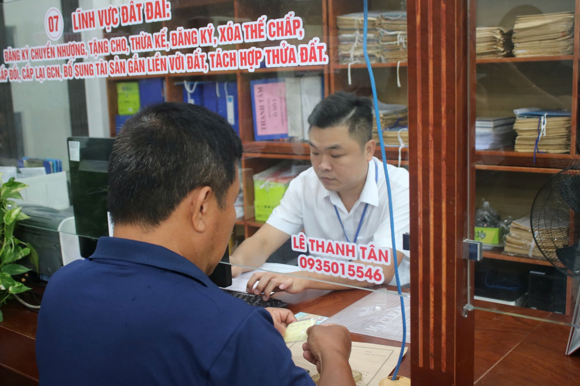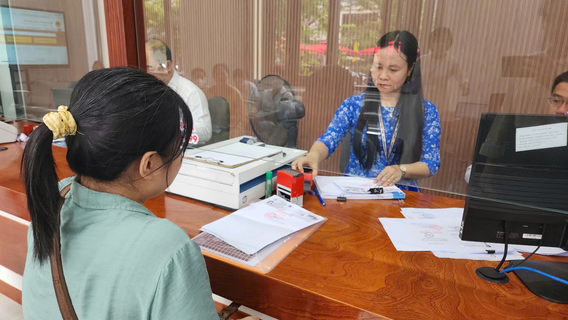 Cán bộ tại trung tâm hỗ trợ người dân làm các thủ tục hành chính.