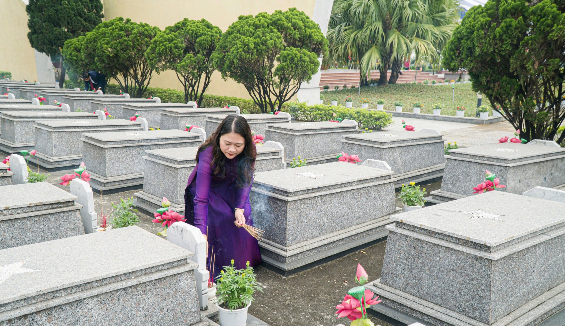 Lãnh đạo quận Hải Châu dâng hương tại Nghĩa trang Liệt sĩ thành phố.