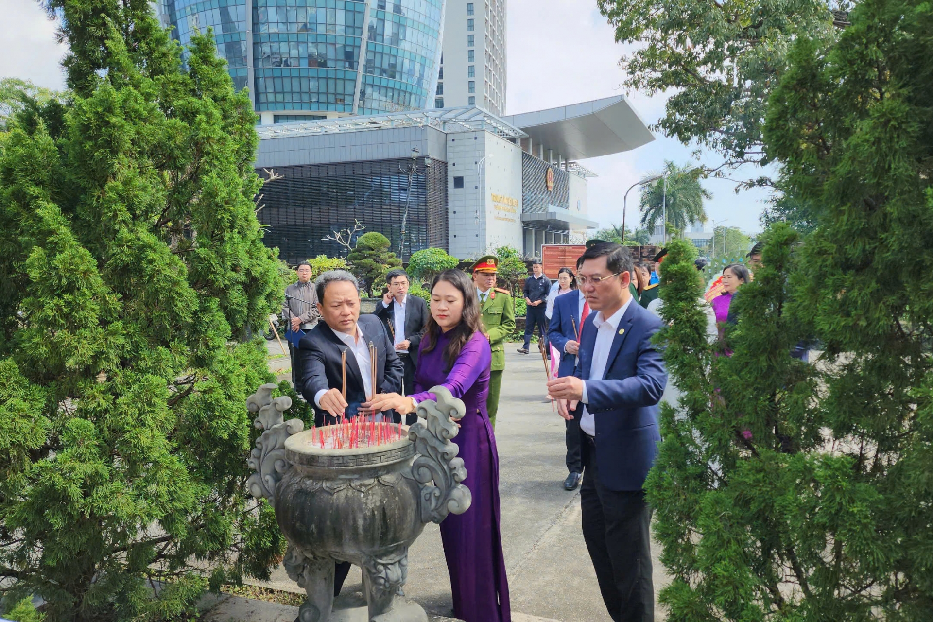 Lãnh đạo quận Hải Châu dâng hương tại Đài Tưởng niệm thành phố