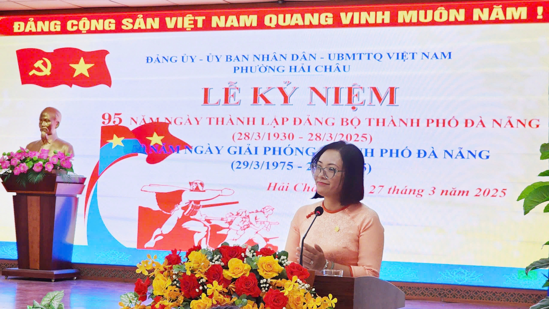 Tại chương trình, bà Lê Thị Thuận, Phó Bí thư Đảng ủy, Chủ tịch UBND phường Hải Châu đã có phát biểu chào mừng, ôn lại kỷ niệm 95 năm thành lập Đảng bộ thành phố; kỷ niệm 50 năm Ngày giải phóng thành phố Đà Nẵng và thông tin về tình hình phát triển kinh tế-xã hội của phường Hải Châu.