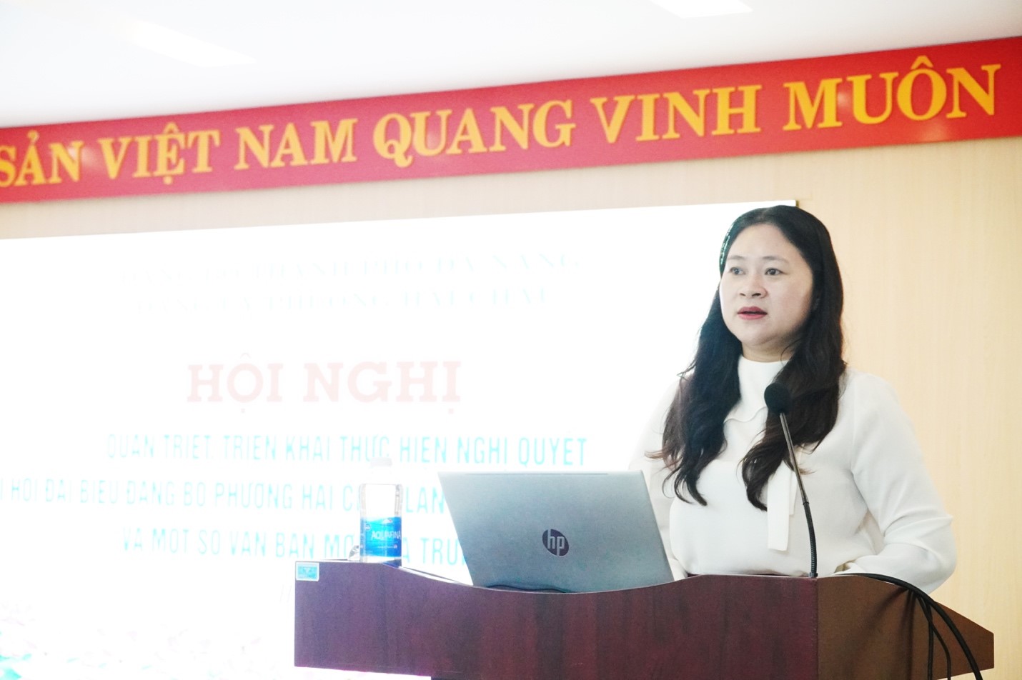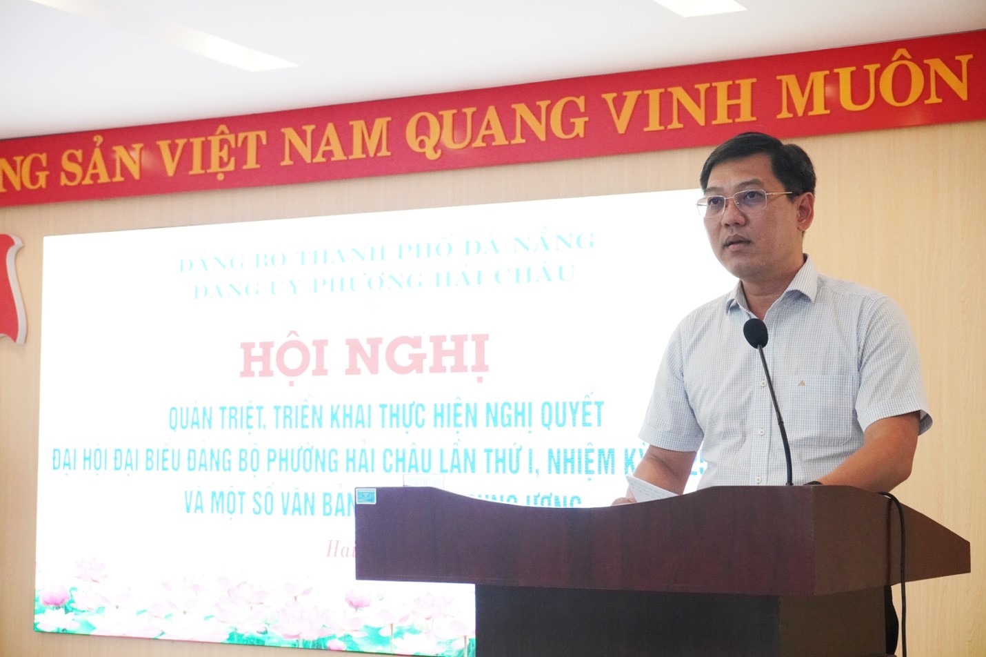Tại đây, đồng chí Cao Thị Huyền Trân, Thành uỷ viên, Bí thư Đảng uỷ phường Hải Châu đã có báo cáo Quán triệt Nghị quyết Đại hội Đảng bộ phường Hải Châu lần thứ I, nhiệm kỳ 2025-2030 và Chương trình hành động của Đảng ủy về thực hiện Nghị quyết Đại hội Đảng bộ quận Hải Châu lần thứ I, nhiệm kỳ 2025-2030.