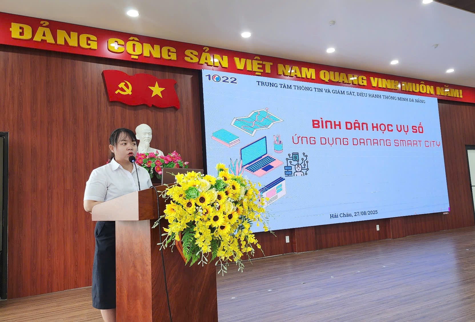 Ngay sau chương trình phát động, bà Trương Thị Hoài Anh - Chuyên viên Trung tâm Thông tin và giám sát điều hành thông minh thành phố Đà Nẵng thuộc Sở Khoa học và Công nghệ thành phố đã giới thiệu, hướng dẫn những kiến thức, kỹ năng truyền thông chuyển đổi số, kỹ năng khai thác các bài học về Bình dân học vụ AI trên Cổng 1022, hướng dẫn sử dụng ứng dụng DanangSmartCity.