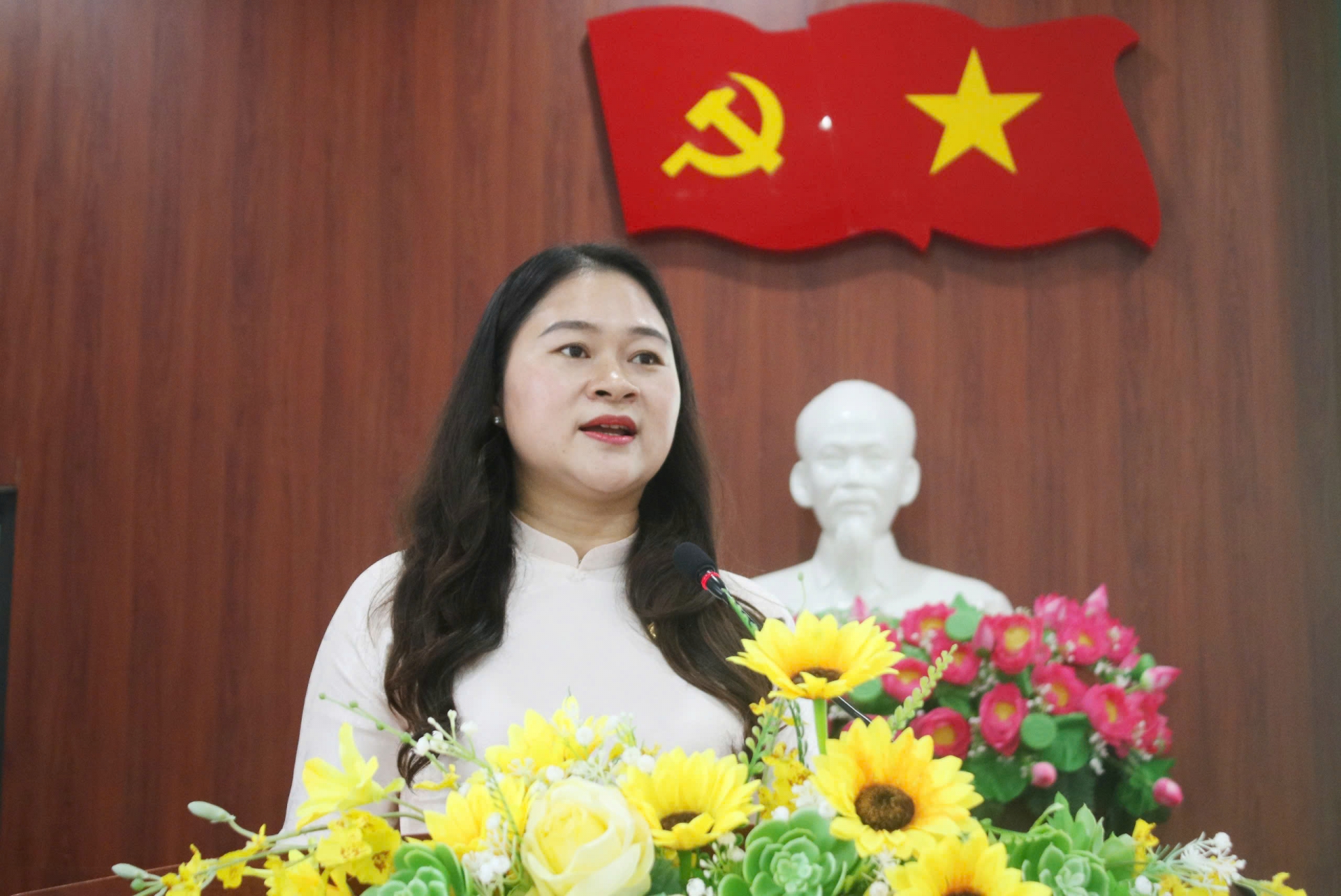 Bà Cao Thị Huyền Trân - Bí thư Đảng uỷ phường Hải Châu phát biểu tại hội nghị.