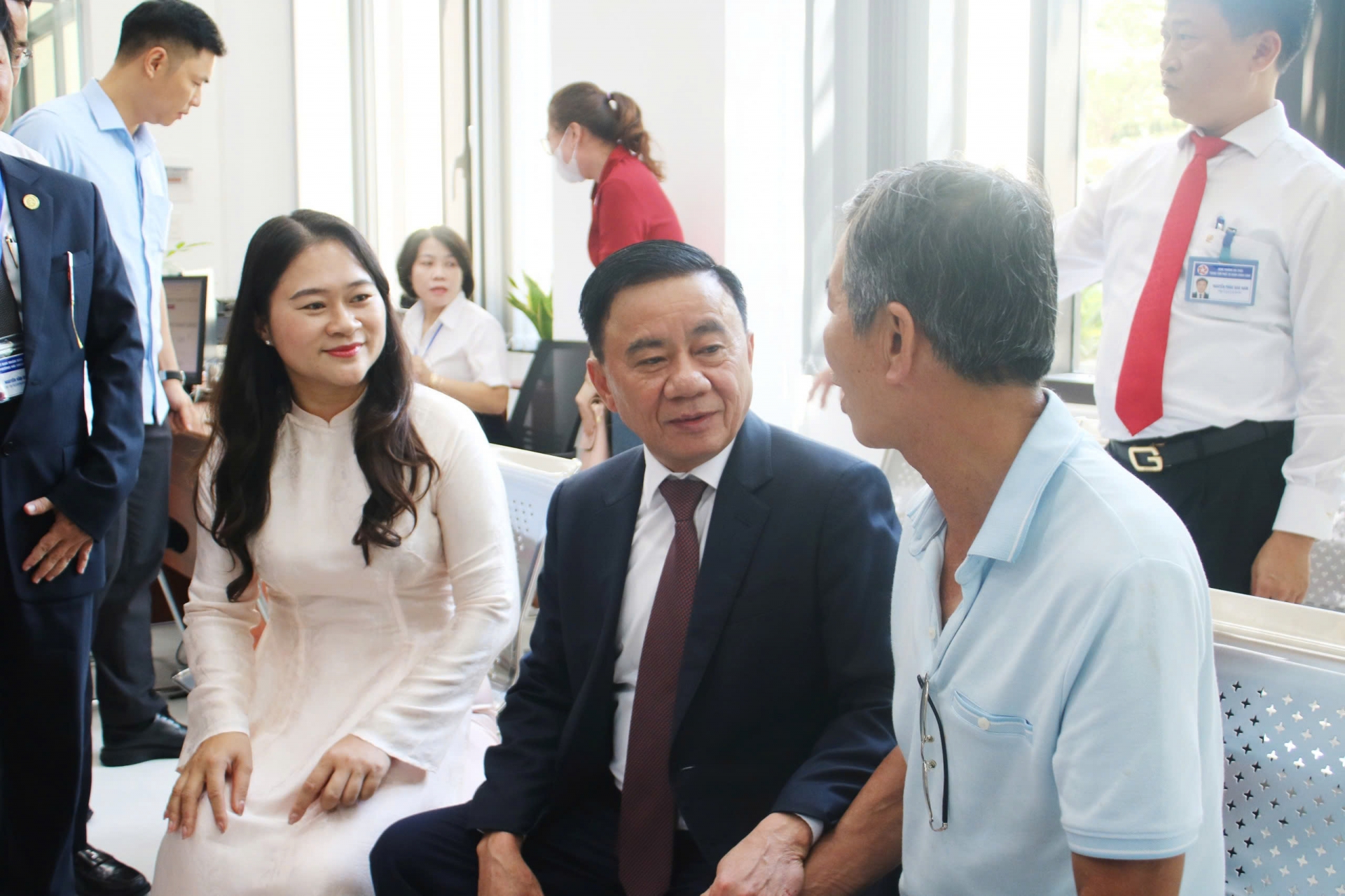 Thường trực Ban Bí thư Trần Cẩm Tú hỏi thăm người dân phường Hải Châu tại Trung tâm Phục vụ Hành chính công.