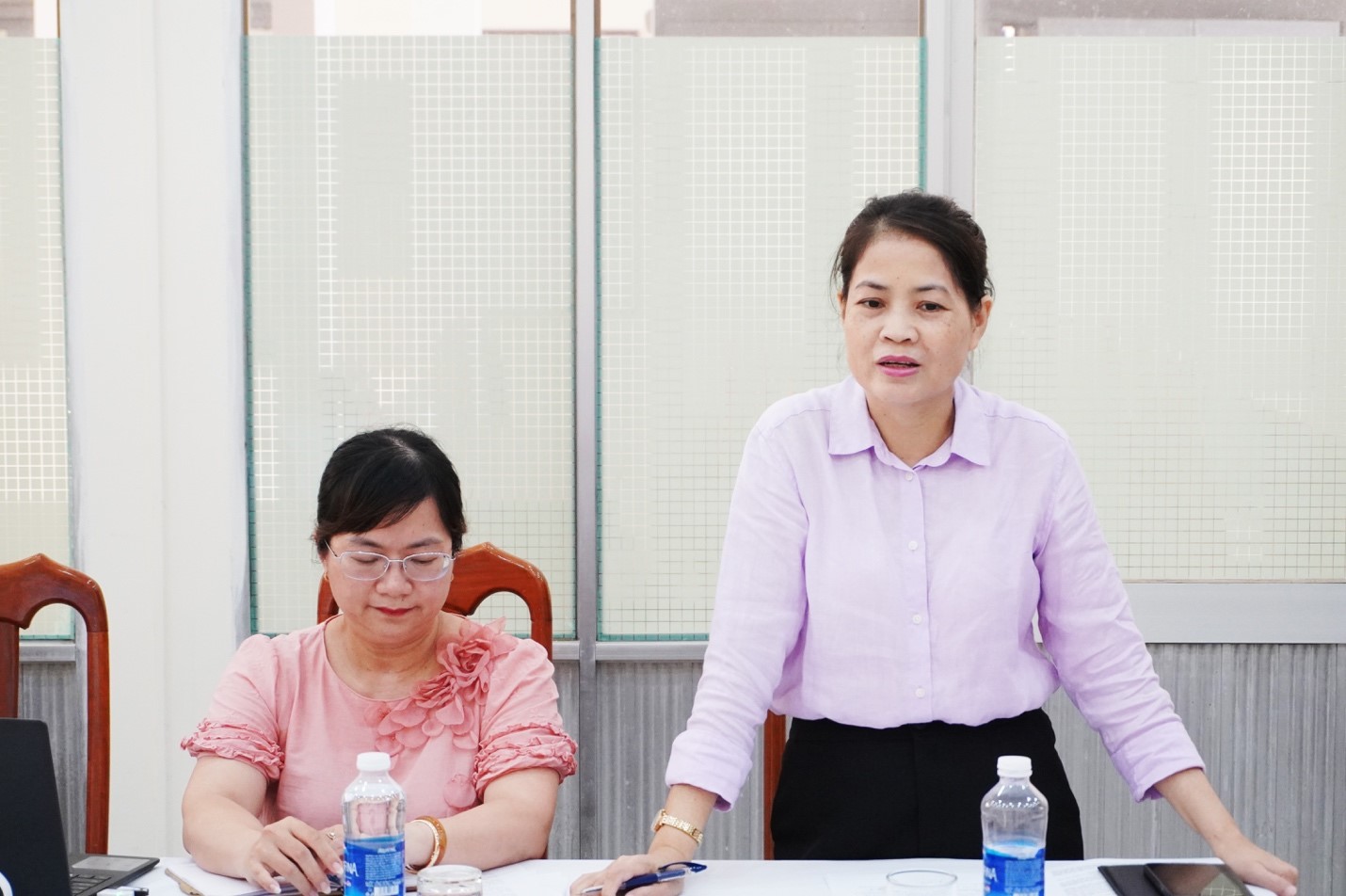 Đồng chí  Trần Thị Kim Yến - Trưởng Ban Xây dựng Đảng Đảng ủy phường báo cáo tại buổi làm việc