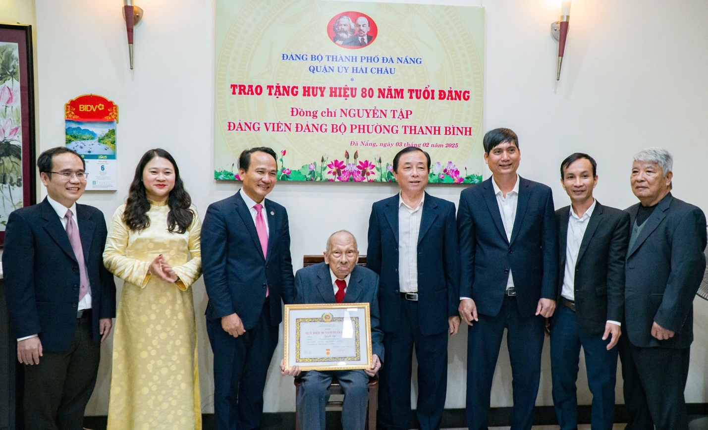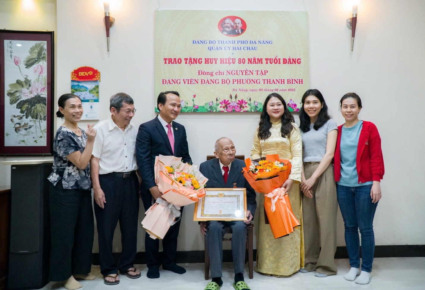 Nằm trong chuỗi các hoạt động kỷ niệm 95 năm ngày thành lập Đảng Cộng sản Việt Nam (03/02/1930 – 03/02/2025). Tối 03/02, đồng chí Nguyễn Đình Vĩnh, Phó Bí thư Thường trực Thành ủy Đà Nẵng cùng đồng chí Cao Thị Huyền Trân, Bí thư Quận ủy Hải Châu đã đến thăm và trao Huy hiệu 80 năm tuổi Đảng cho đồng chí Nguyễn Tập, đảng viên thuộc Đảng bộ phường Thanh Bình, quận Hải Châu.