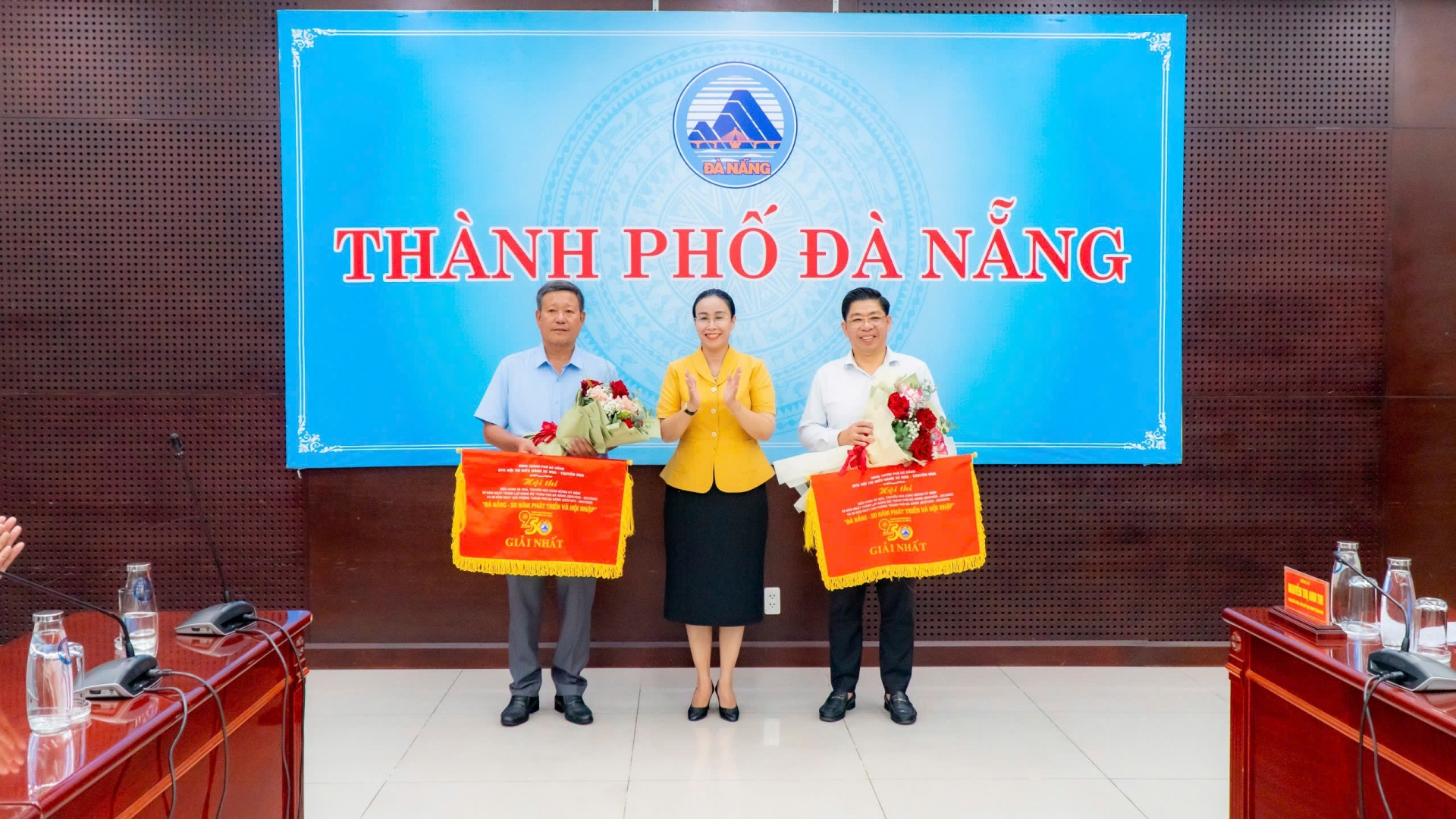 Bà Nguyễn Thị Anh Thi – Phó Chủ tịch UBND TP Đà Nẵng trao giải nhất hội thi xe hoa, thuyền hoa.