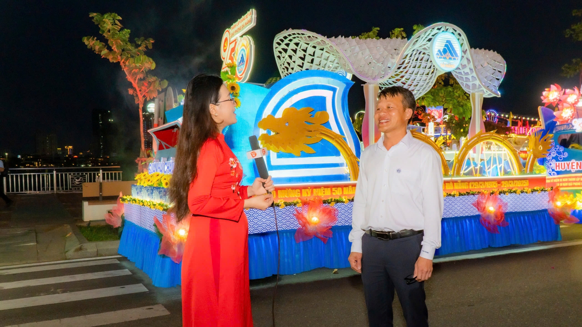 Giám đốc Trung tâm Văn hoá – Thể thao quận Hải Châu trả lời phỏng vấn về xe hoa quận.
