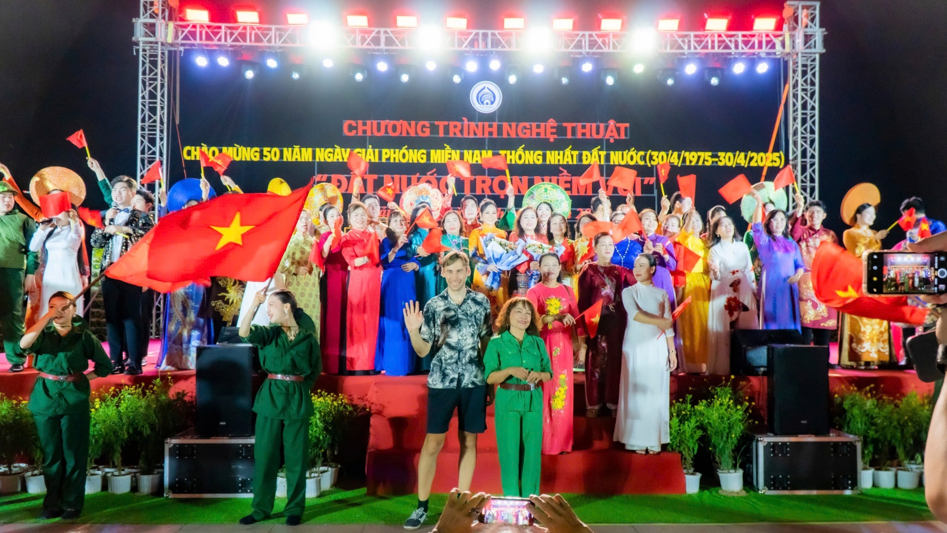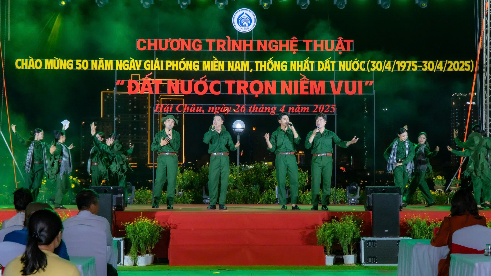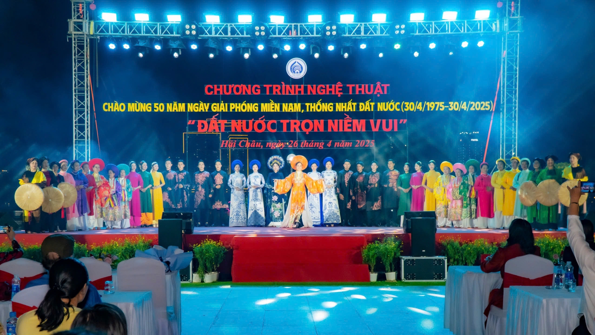 Tối 26/4, chương trình nghệ thuật chào mừng 50 năm Ngày Giải phóng miền Nam, thống nhất đất nước với chủ đề “Đất nước trọn niềm vui” với những tiết mục hát múa, trình diễn áo dài đã mang lại không khí hào hùng, sôi động tại Phố đi bộ Bạch Đằng.