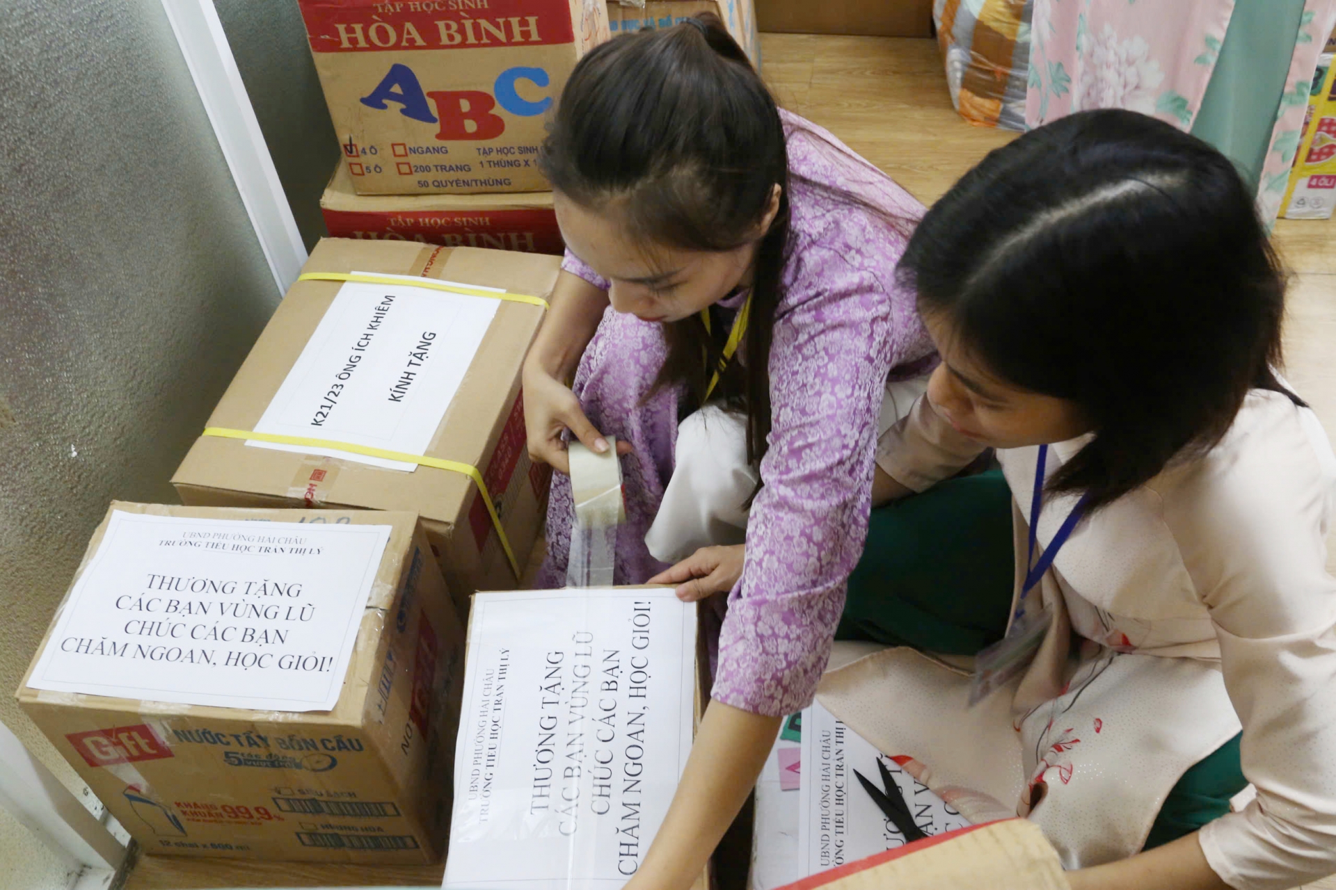 Nhắc đến những kỷ niệm trong những ngày vừa qua, cô Hạnh xúc động khi có những người hoàn toàn xa lạ tìm đến trường, đến nhà riêng của cô Hạnh để trao tặng những túi quà nhỏ, bên trong là sách vở, đồ dùng học tập và nhiều vật phẩm khác. Có người nhà ở tận Liên Chiểu, Hòa Khánh, Cẩm Lệ – cách rất xa trung tâm Hải Châu – vậy mà vẫn đội mưa, vượt gió để mang đến gửi tận tay.