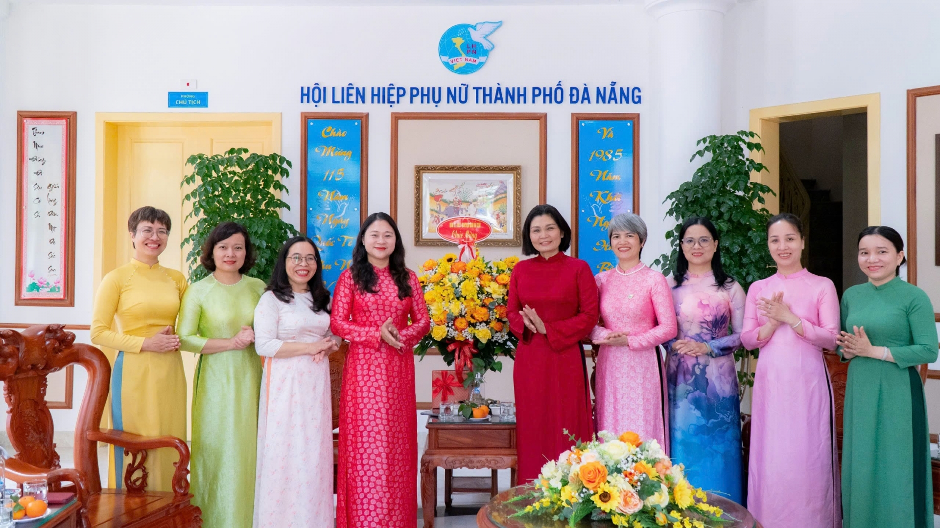 Bà Cao Thị Huyền Trân - Bí thư Quận ủy Hải Châu thăm, tặng hoa chúc mừng Hội Liên hiệp Phụ nữ thành phố.