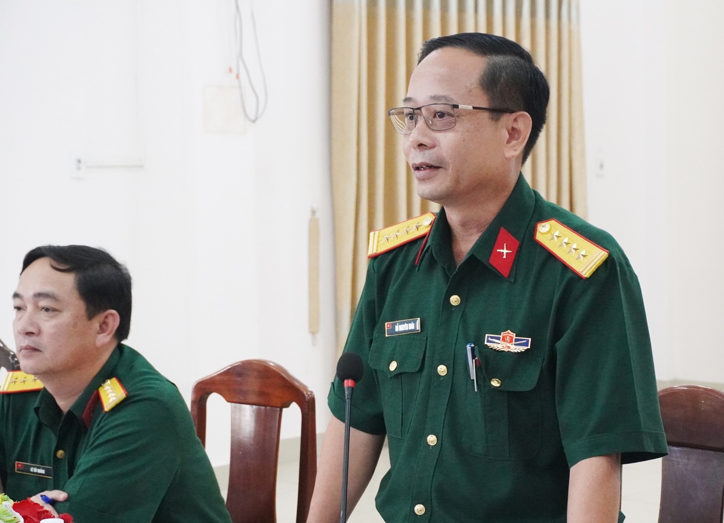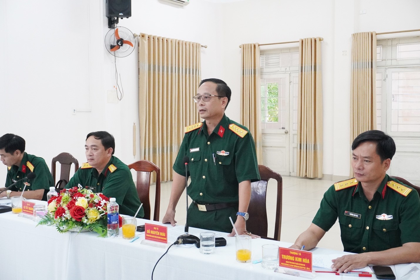 Đại tá Đỗ Nguyên Hoài - UV BTV ĐUQS thành phố, Phó Chính ủy Bộ CHQS thành phố phát biểu tại hội nghị.