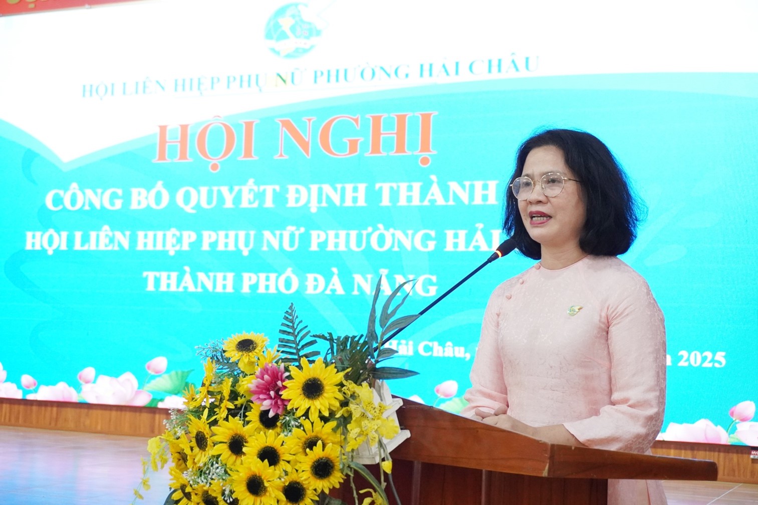 Phát biểu chỉ đạo tại hội nghị, bà Hoàng Thị Thu Hương, Chủ tịch Hội Liên hiệp Phụ nữ thành phố Đà Nẵng, chúc mừng Ban Chấp hành, Ban Thường vụ và các đồng chí được chỉ định giữ chức vụ trong nhiệm kỳ 2021 – 2026. Bà Hương nhấn mạnh việc thành lập Hội Liên hiệp Phụ nữ phường Hải Châu là bước đi quan trọng, góp phần củng cố và phát triển tổ chức hội phụ nữ ở cơ sở, đáp ứng yêu cầu nhiệm vụ trong giai đoạn mới.