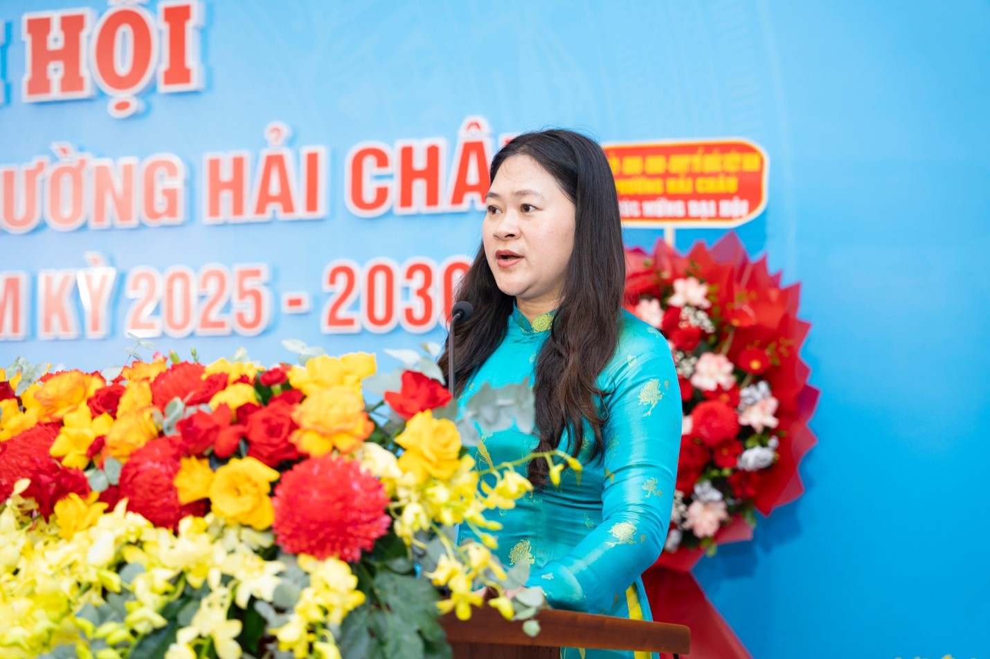 Bà Cao Thị Huyền Trân – Bí thư Đảng uỷ, Chủ tịch HĐND lâm thời phường phát biểu tại đại hội