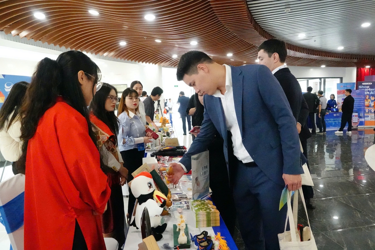 Các gian hàng tại triển lãm giới thiệu sản phẩm đặc trưng, văn hóa của nhiều quốc gia