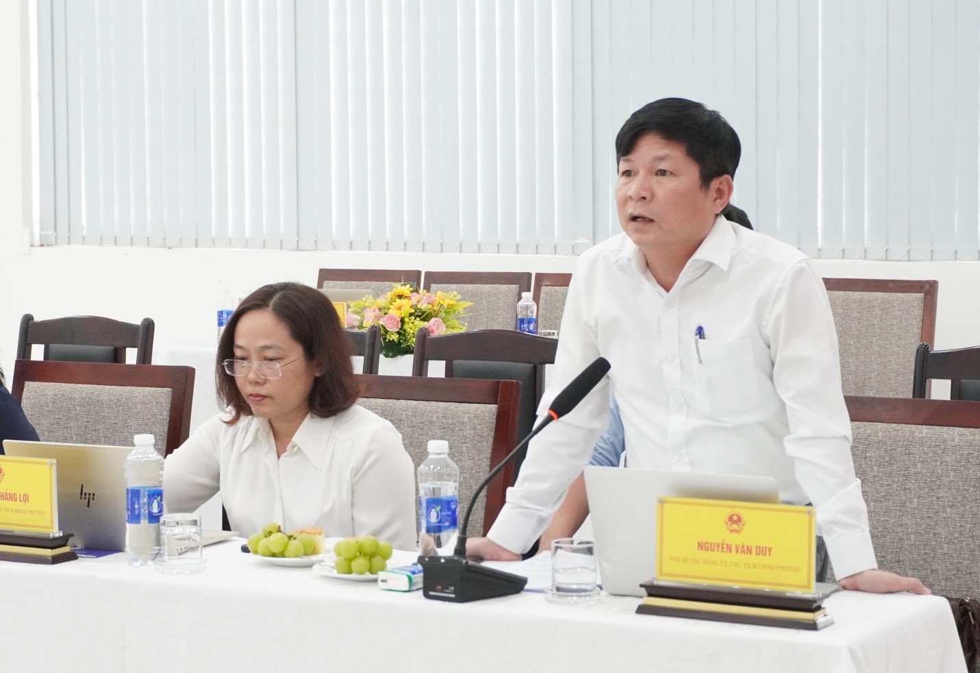 Chủ tịch UBND phường Hải Châu báo cáo về những khó khăn, vướng mắc.