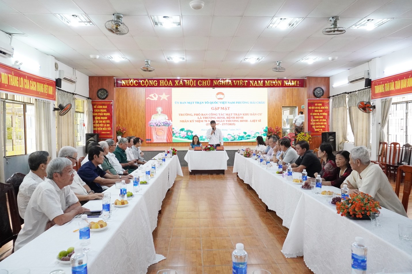 Ngày 24/7, nhằm tiếp nối truyền thống “Uống nước nhớ nguồn”, “Đền ơn đáp nghĩa” của dân tộc và nhân kỷ niệm 78 năm Ngày Thương binh - Liệt sĩ (27/7/1947 – 27/7/2025), Ban Thường trực Ủy ban MTTQ Việt Nam phường Hải Châu đã tổ chức buổi gặp mặt thân mật với các đồng chí Trưởng, Phó Ban công tác Mặt trận khu dân cư là thương binh, bệnh binh đang công tác trên địa bàn phường.