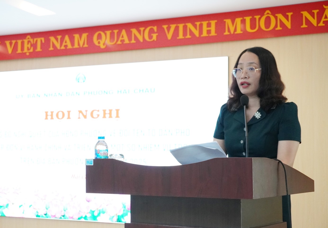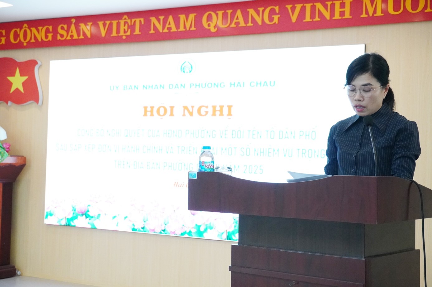 Phường Hải Châu hiện có 332 tổ dân phố. Tại hội nghị, UBND phường đã công bố Nghị quyết của HĐND phường về đổi tên tổ dân phố sau sắp xếp đơn vị hành chính; báo cáo đánh giá tình hình 1 tháng triển khai thực hiện và vận hành mô hình chính quyền địa phương 2 cấp.