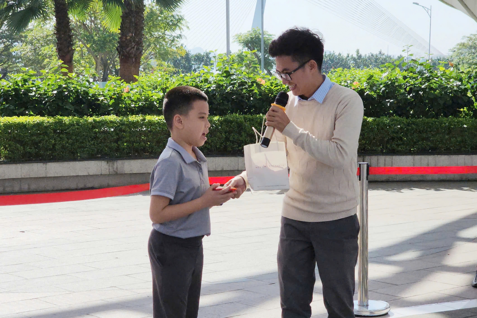 Em Nguyễn Tấn Hùng (10 tuổi), một vị khách nhí đã rất vui khi được mời lên dự đoán nước cờ trên bàn cờ khổng lồ. Biết được sự kiện này từ trước Tết, em đã đặt lịch với ba mẹ đưa đến Công viên APEC để tham gia hoạt động.