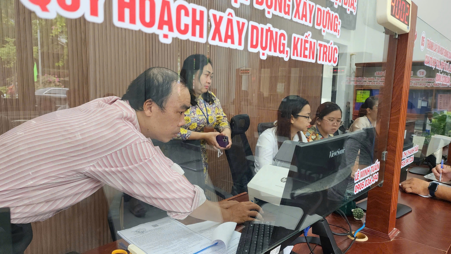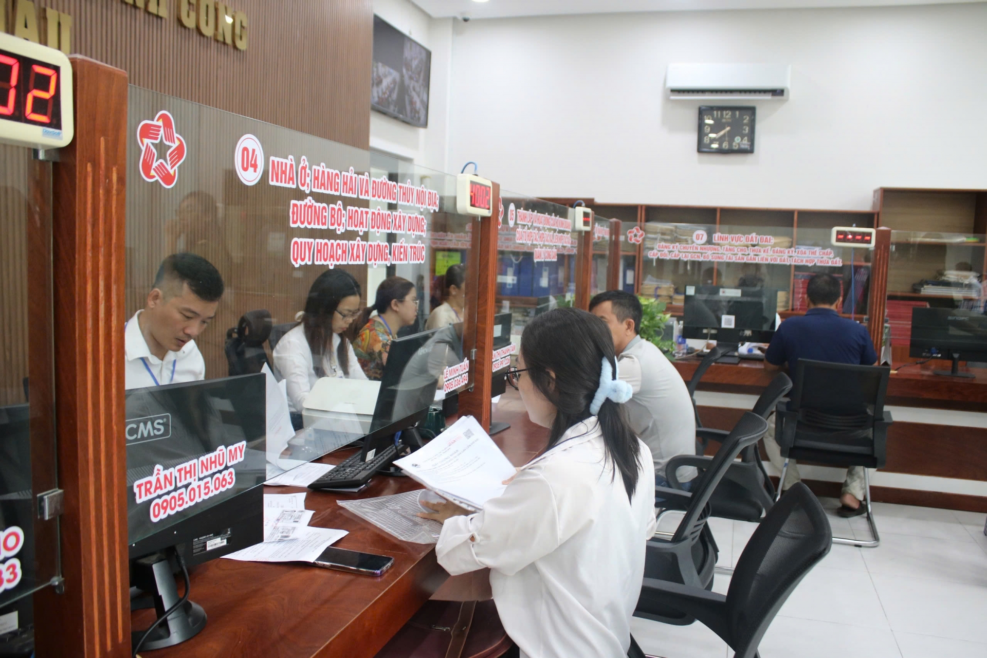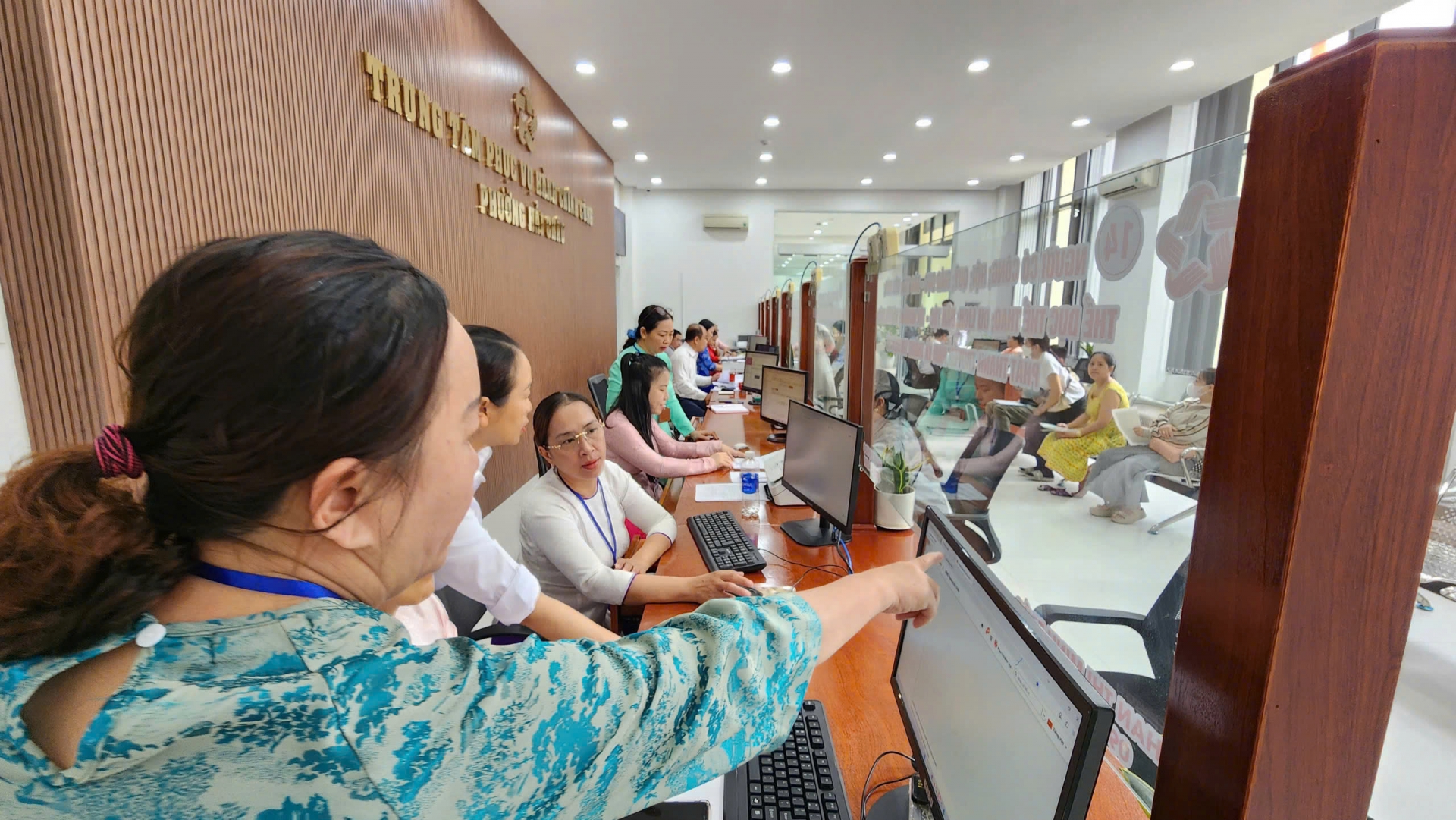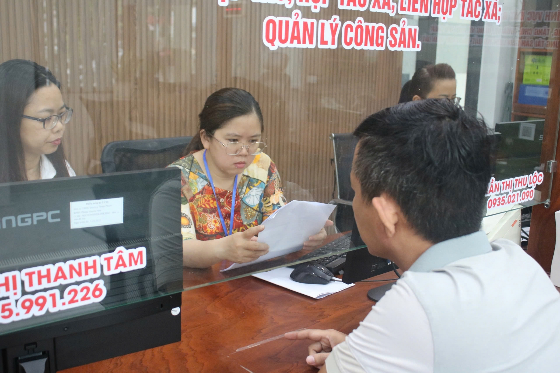 Cán bộ tại trung tâm hỗ trợ người dân làm các thủ tục hành chính.