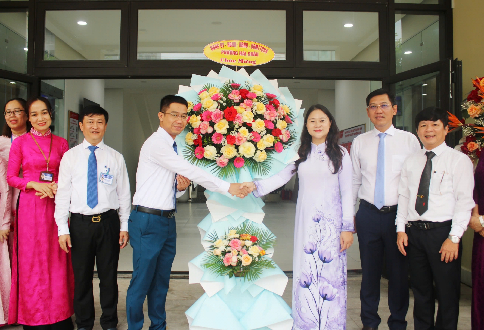 Trước đó, ngay từ đầu giờ sáng 1/7, bà Cao Thị Huyền Trân - Bí thư Đảng uỷ phường Hải Châu cùng các lãnh đạo phường đã đến thăm, tặng hoa, động viên các cán bộ tại Trung tâm Hành chính công.