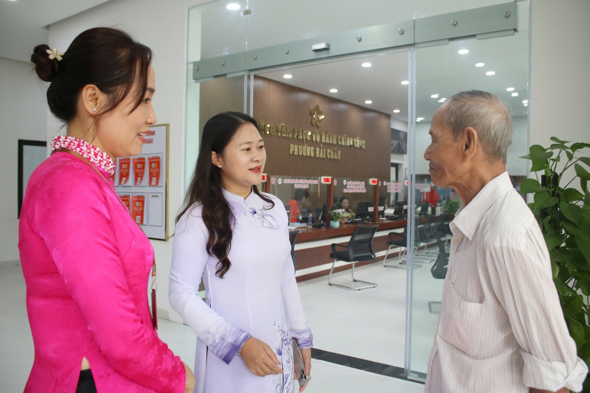 Ngày 1/7, Trung tâm Phục vụ Hành chính công phường Hải Châu mở cửa từ sớm, không khí làm việc diễn ra khẩn trương, chuyên nghiệp. Hệ thống công nghệ thông tin, quầy tiếp nhận hồ sơ và đội ngũ cán bộ công chức đều được bố trí đầy đủ hướng dẫn người dân làm hồ sơ trực tuyến và trực tiếp.