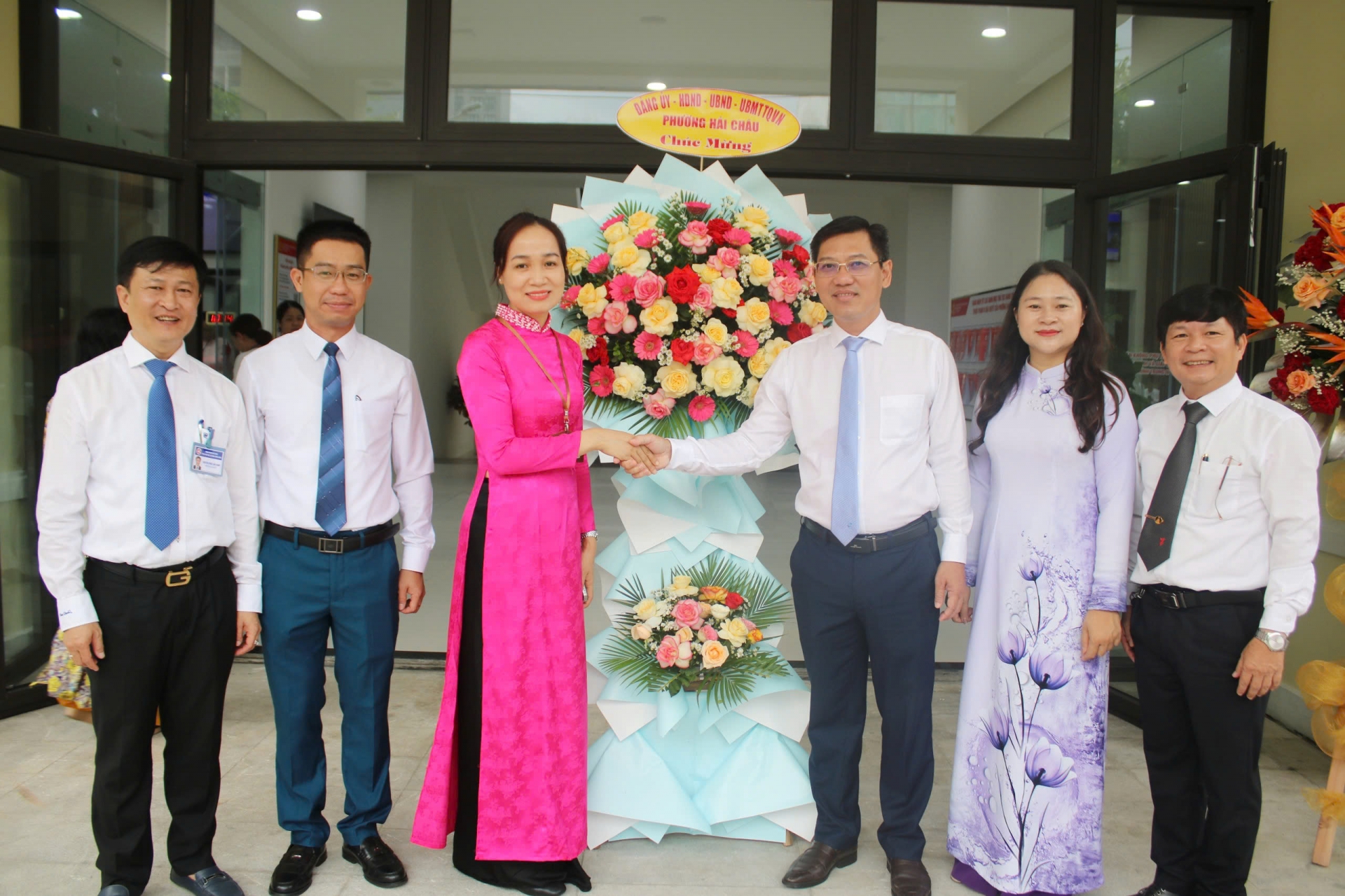Bà Cao Thị Huyền Trân - Bí thư Đảng uỷ phường Hải Châu cùng các lãnh đạo phường đã đến thăm, tặng hoa, động viên các cán bộ tại Trung tâm Hành chính công.