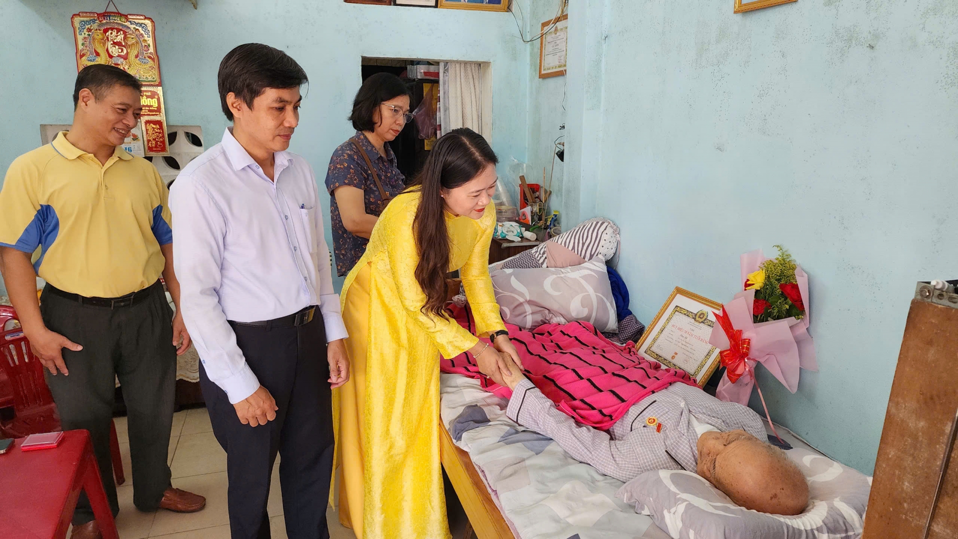 Đồng chí Cao Thị Huyền Trân thăm hỏi sức khoẻ đồng chí Đặng Lai