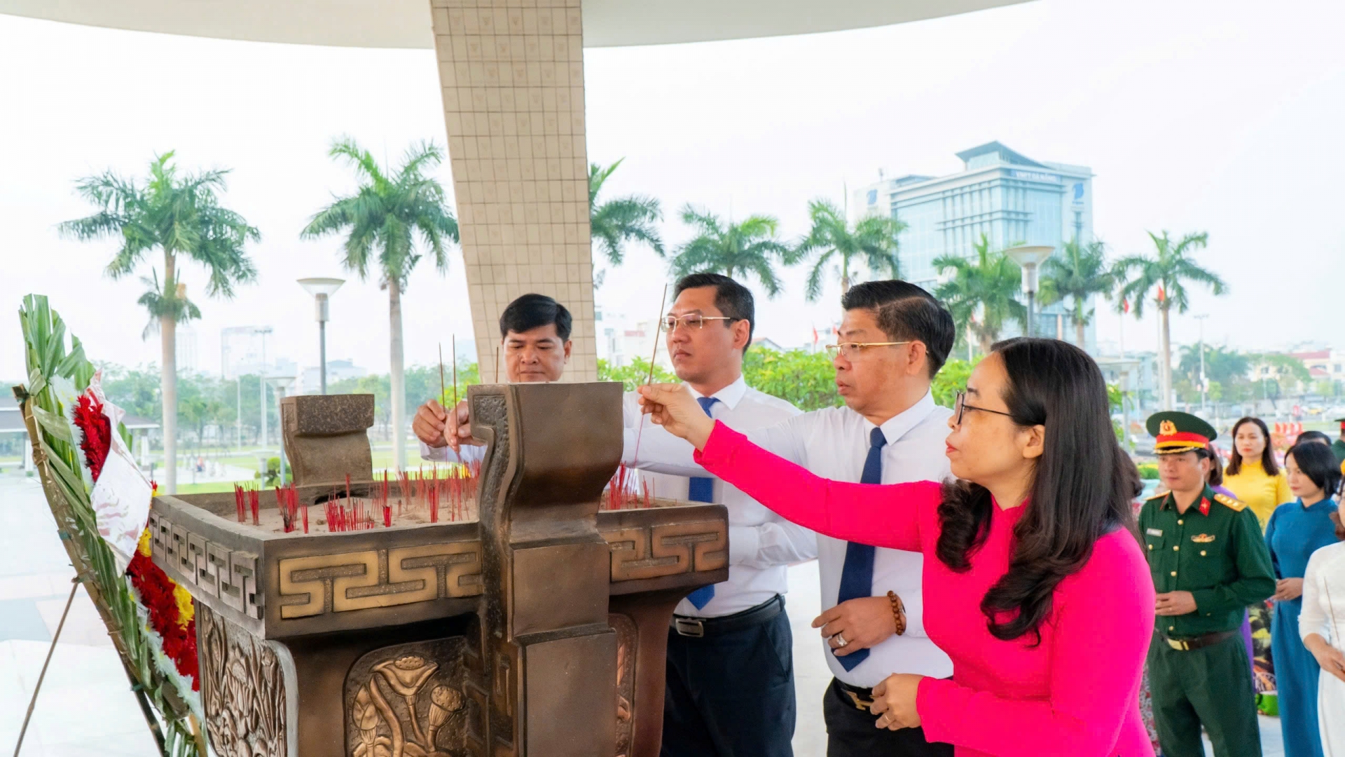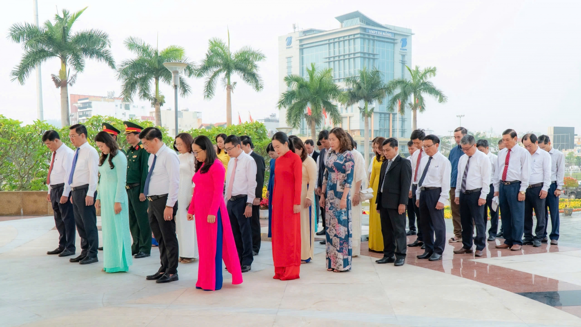 Lãnh đạo quận Hải Châu tổ chức lễ viếng, dâng hương và dành một phút mặc niệm tại Đài Tưởng niệm thành phố.