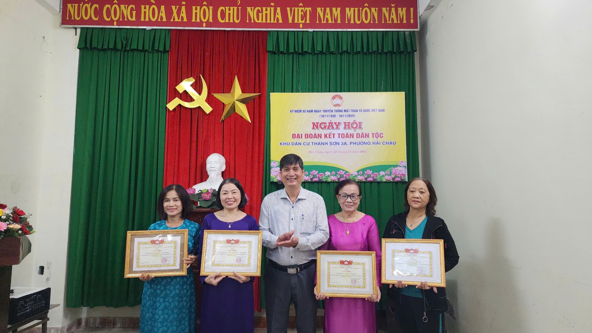 Tối 12/11, khu dân cư Thanh Sơn 3A – Thanh Bình, phường Hải Châu đã tổ chức kỷ niệm 95 năm Ngày Truyền thống Mặt trận Tổ quốc Việt Nam (18/11/1930 – 18/11/2025).