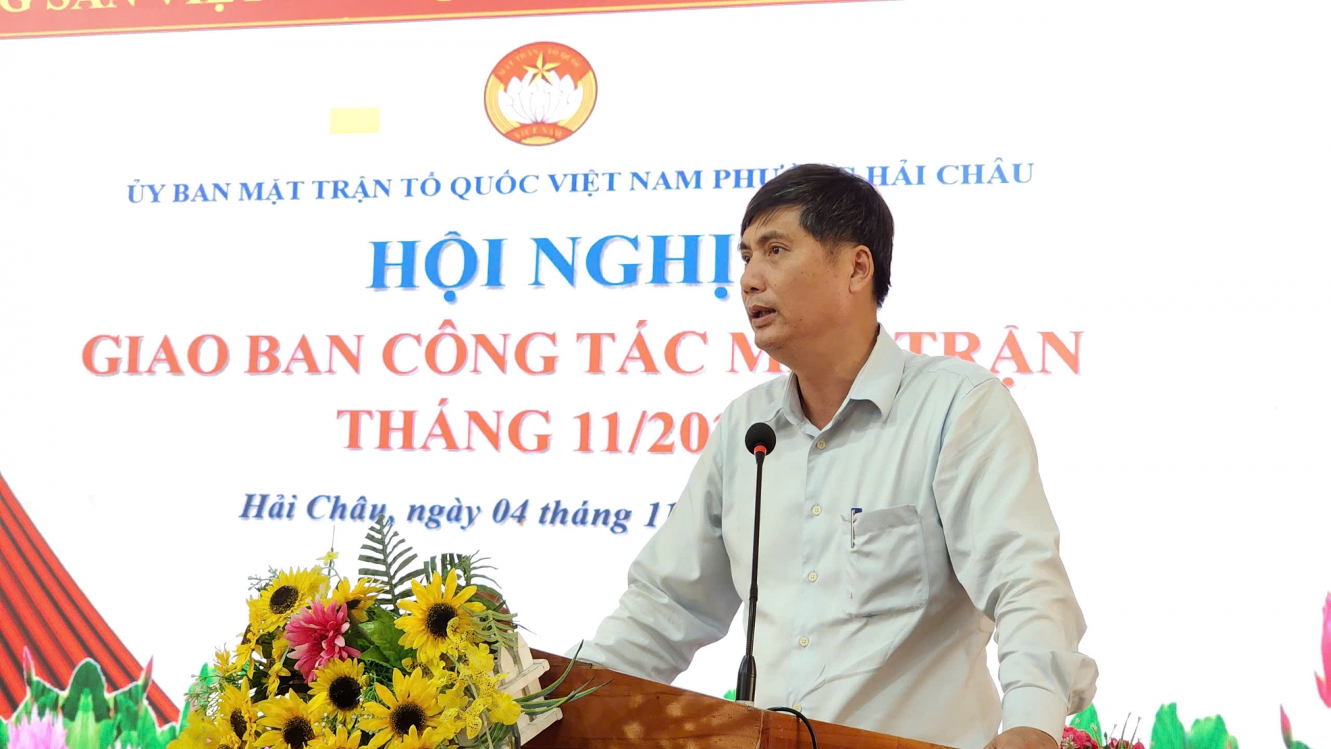 Chiều 4/11, Ban Thường trực Ủy ban MTTQ Việt Nam phường Hải Châu tổ chức Hội nghị giao ban Công tác Mặt trận tháng 11/2025 nhằm triển khai một số nội dung có liên quan về việc tổ chức Ngày hội Đại đoàn kết tại khu dân cư và các hoạt động kỷ niệm 95 năm Ngày truyền thống Mặt trận Tổ quốc Việt Nam (18/11/1930 – 18/11/2025).