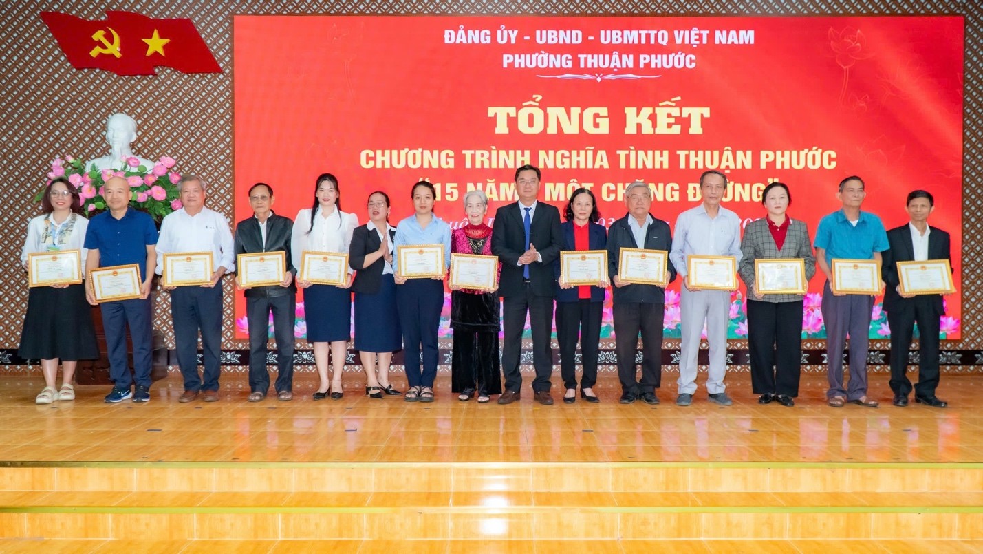 Với những ý nghĩa đó, dịp này, phường Thuận Phước đã biểu dương, khen thưởng đối với 29 tập thể, 15 cá nhân có đóng góp liên tục nhiều năm.