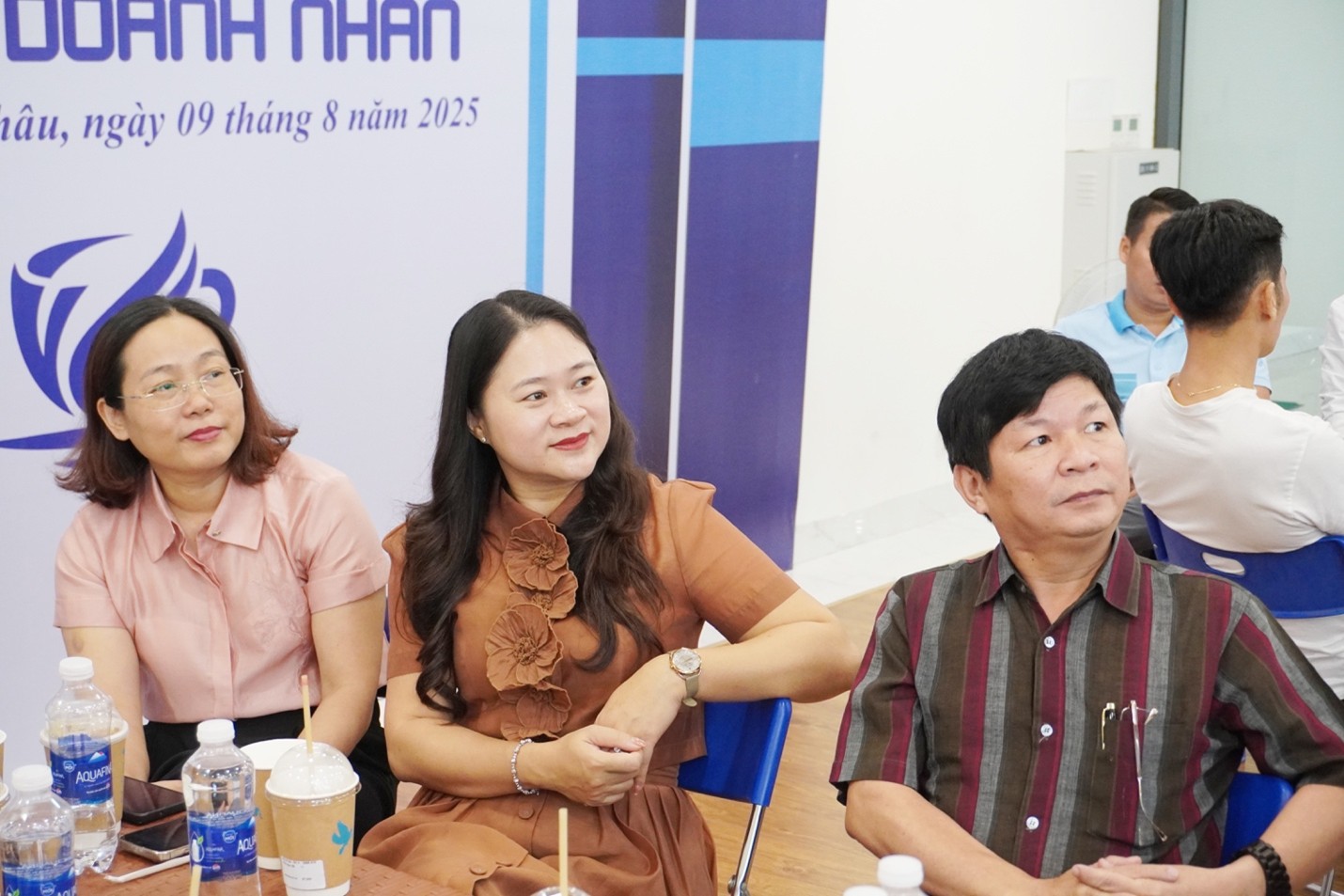 Bà Cao Thị Huyền Trân – Bí thư Đảng uỷ, Chủ tịch HĐND lâm thời phường cùng ông Nguyễn Văn Duy – Chủ tịch UBND quạn và bà Phan Thị Thắng Lợi – Phó Chủ tịch HĐND phường lắng nghe các ý kiến của doanh nghiệp.
