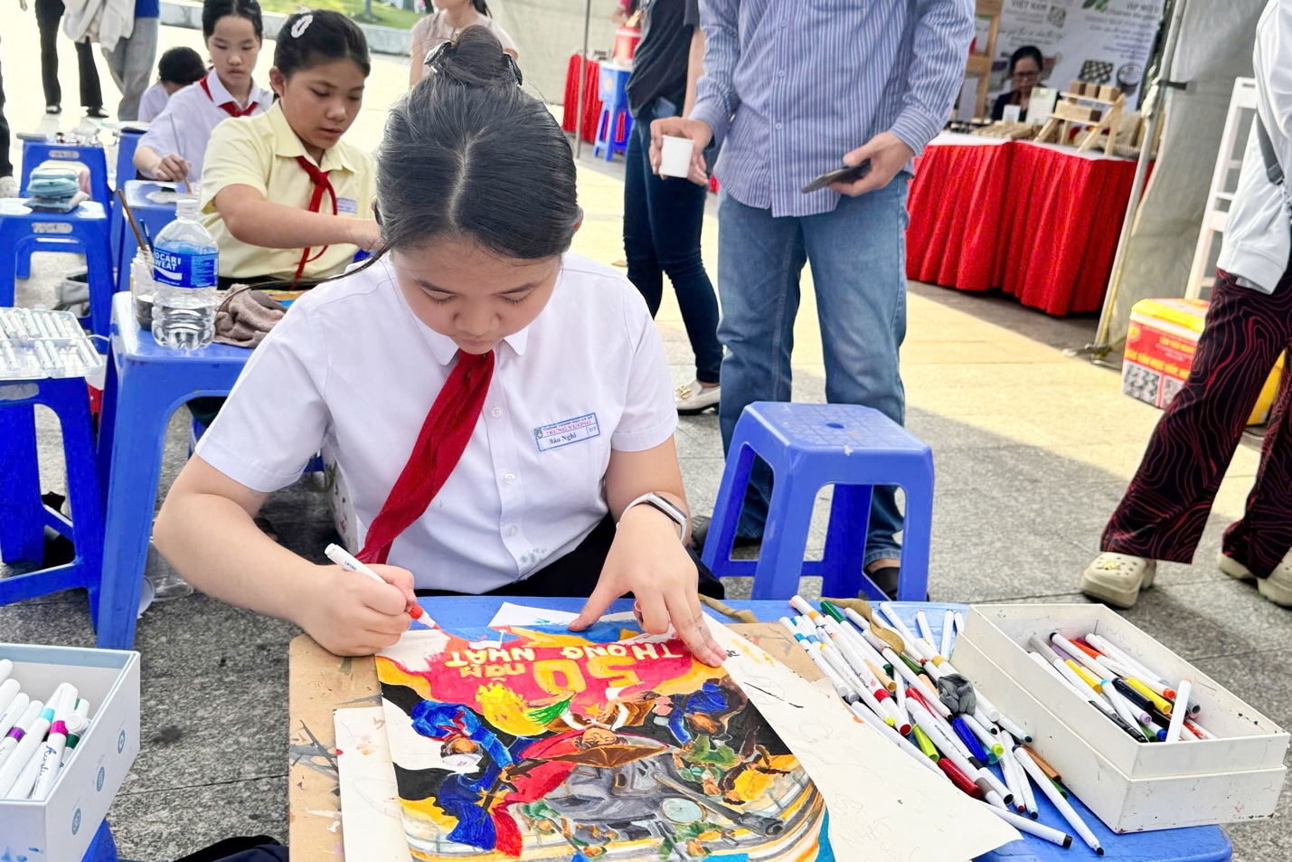 Đoàn thanh niên phường tổ chức Hội thi vẽ tranh “Em yêu Tổ quốc Việt Nam”. Từng bức tranh, từng nét vẽ được các em chăm chuốt, nắn nót. Tất cả đều được vẽ bằng tình yêu nước, lòng tự hào dân tộc của các em học sinh trường THCS Trưng Vương. Các gian hàng được bày trí đẹp mắt, thu hút người dân đến tham quan, mua sắm, tạo điều kiện cho các cơ sở kinh doanh trên địa bàn được quảng bá các sản phẩm kinh doanh của mình đến với người dân.