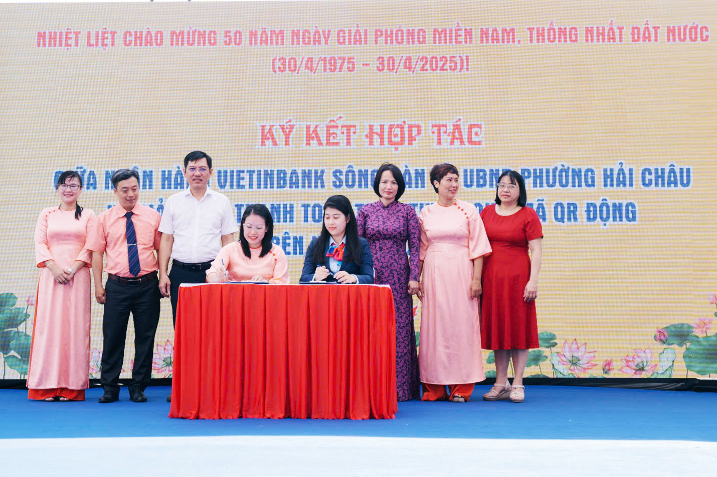 Đặc biệt, để xây dựng một mối liên kết, quan hệ hợp tác lâu dài, trên cơ sở hỗ trợ cho người dân tiếp cận với việc thanh toán thông minh, đại diện lãnh đạo địa phương và lãnh đạo Ngân hàng ViettinBank, Chi nhánh Sông Hàn đã ký kết chương trình hợp tác giữa 2 đơn vị.