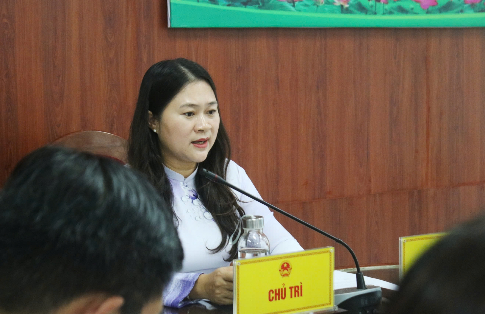 Bà Cao Thị Huyền Trân - Bí thư Đảng uỷ, Chủ tịch HĐND lâm thời phường chủ trì kỳ họp.