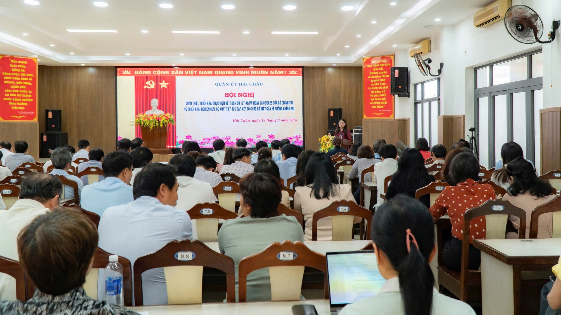 Chiều 13/3, thực hiện chương trình công tác năm 2025, Thường trực Quận ủy Hải Châu đã tổ chức hội nghị quán triệt, triển khai thực hiện Kết luận 127 ngày 28/2/2025 của Bộ chính trị về triển khai nghiên cứu, đề xuất tiếp tục sắp xếp tổ chức bộ máy của hệ thống chính trị và các văn bản mới của Trung ương và của Thành ủy về công tác phòng, chống tham nhũng, lãng phí.