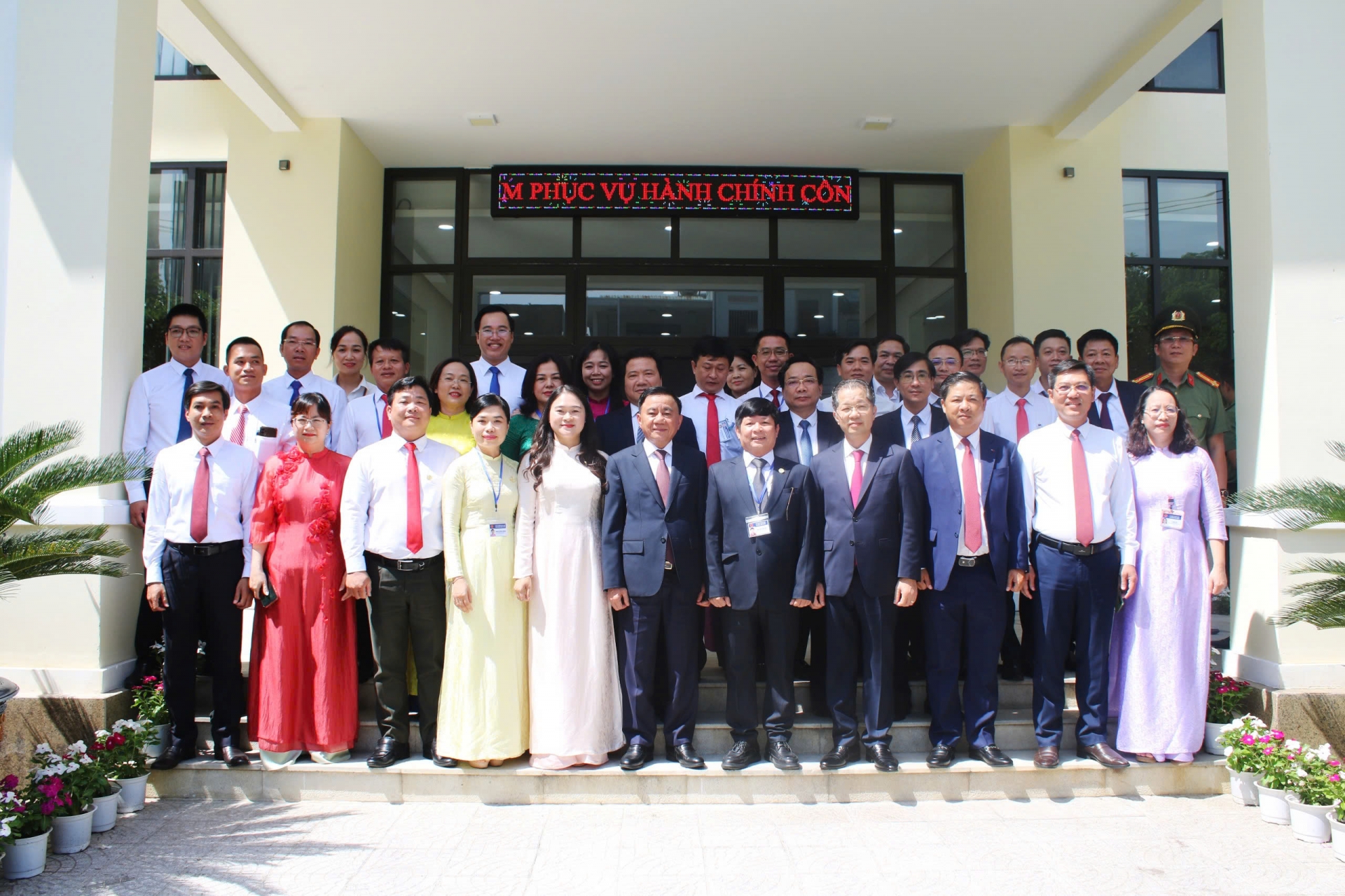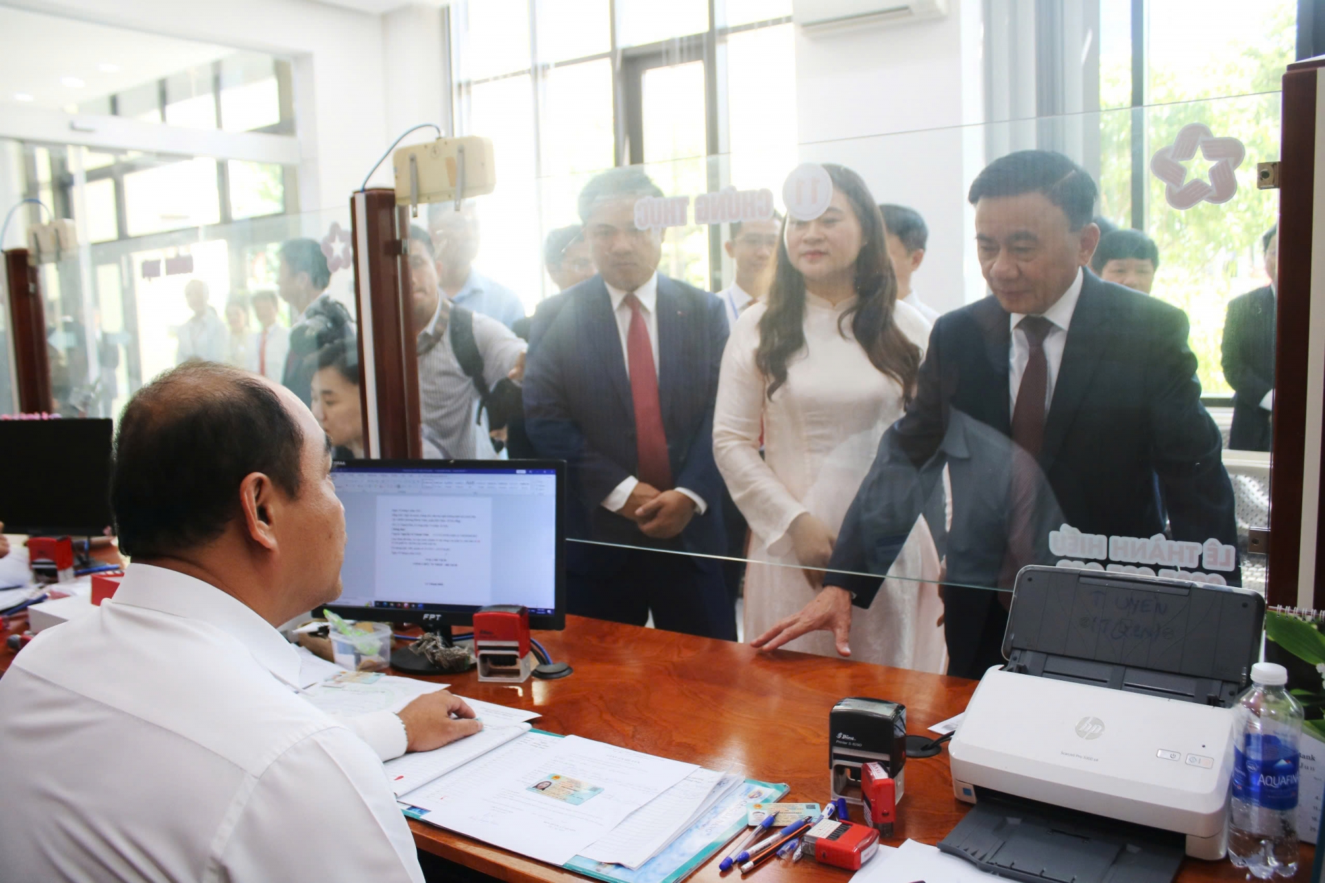 Tại đây, ông Trần Cẩm Tú đã ân cần hỏi thăm người dân tại bộ phận một cửa về những khó khăn, thuận lợi khi làm thủ tục hành chính, đồng thời động viên đội ngũ cán bộ, công chức đang làm nhiệm vụ trong thời điểm chuyển giao hiện nay.