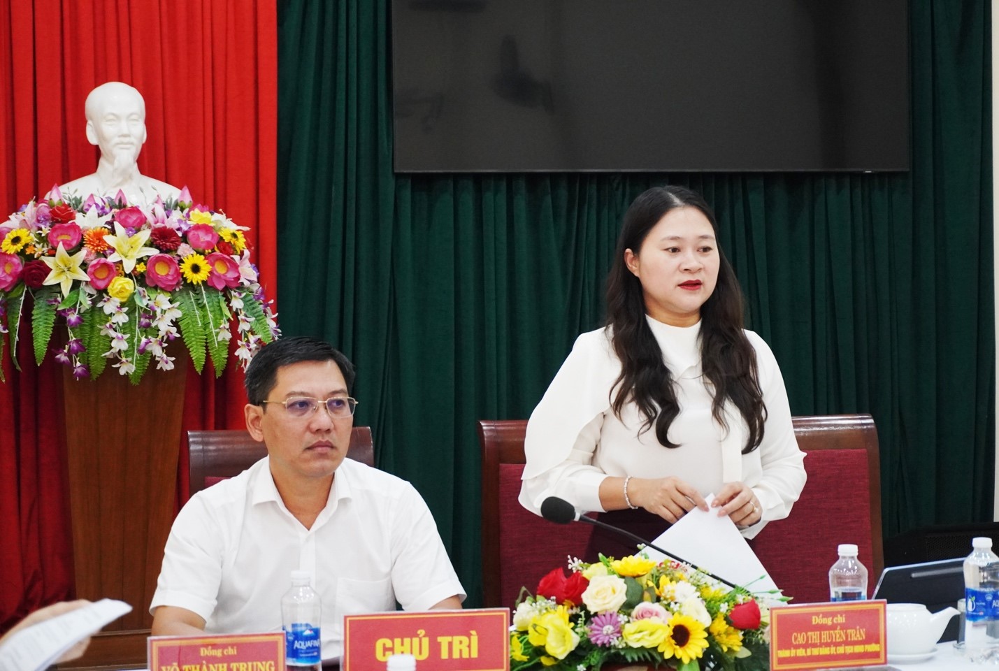 Đồng chí Cao Thị Huyền Trân - Bí thư Đảng ủy, Chủ tịch HĐND lâm thời phường phát biểu chỉ đạo tại buổi làm việc.